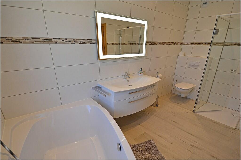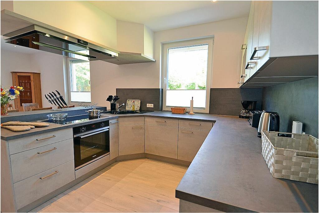 Erdgeschoss: modern und elegant eingerichteter Wohnbereich mit gemütlicher Couchlandschaft und Sessel, der Kamin spendet Wohlfühlatmosphäre an kalten Tagen, TV Sat/Kabel (Flatscreen), Radio, komplett ausgestattete hochwertige Einbauküche mit Kochinsel, großer Esstisch für 6 Personen, 4-Plattenherd (Induktionsherd), Backofen, Kühlschrank mit einem kleinem Gefrierfach, Geschirrspüler, Mikrowelle und diversen Elektrogeräten, 1. Schlafzimmer mit einem Einzelbett (100 x 200) mit Kleiderschrank und Schreibtisch, 1. großes Bad mit ebenerdiger Dusche, Badewanne, WC und Föhn Obergeschoss: 2. Schlafzimmer mit Zugang zum Balkon, Doppelbett (zwei getrennte Matratzen je 80 x 200) und Kleiderschrank mit Schreibtisch, 3. Schlafzimmer mit Zugang zum Balkon, Doppelbett (zwei getrennte Matratzen je 80 x 200), ein Einzelbett (90 x 200 ) und Kleiderschrank mit Schreibtisch, 2. Badezimmer mit ebenerdiger Dusche, WC und Föhn, Souterrain: Waschmaschine, Bügelbrett und Bügeleisen, Wäscheständer Außenbereich: gepflegtes Grundstück, Terrasse mit bequemen Gartenmöbeln (6 Gartenstühle), Grillmöglichkeit besteht (Grill vorhanden), Fahrradständer Zeit für Erholung! – Genießen Sie traumhafte Urlaubstage – Erstvermietung seit dem 01.08.2020 Das schöne neuerbaute Reetgedeckte Doppelhaus „Kliffrand“ ist modern und mit viel Liebe zum Detail eingerichtet. Das gepflegte Grundstück mit Liegewiese ist komplett umzäunt und lädt zum Entspannen ein. Internet (WLAN) steht Ihnen kostenfrei zur Verfügung. Wohnzimmer, Küche und die Bäder haben Fußbodenheizung. Alle anderen Räume haben Heizkörper. Die Fenster sind mit elektrischen Außenjalousien und teilweise mit Insektenschutz ausgestattet. Das Ferienhaus „Kliffrand“ ist ein Nichtraucherquartier. Am Objekt befinden sich 2 PKW-Stellplätze und eine Abstellmöglichkeiten für Fahrräder. Haustiere sind nicht erwünscht.