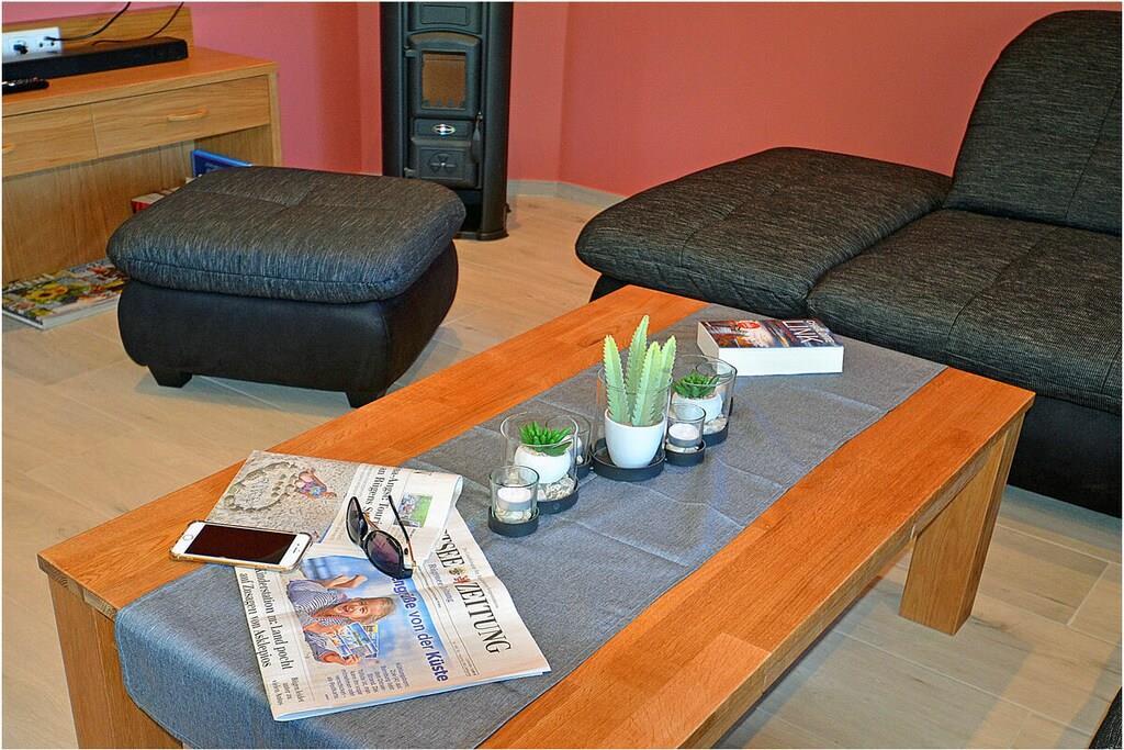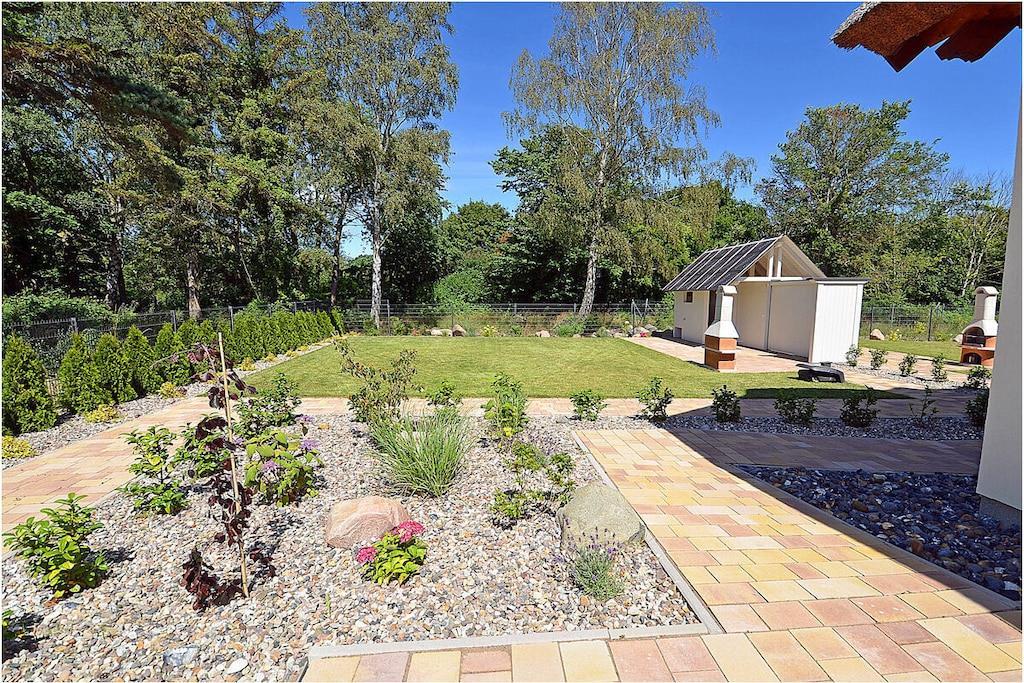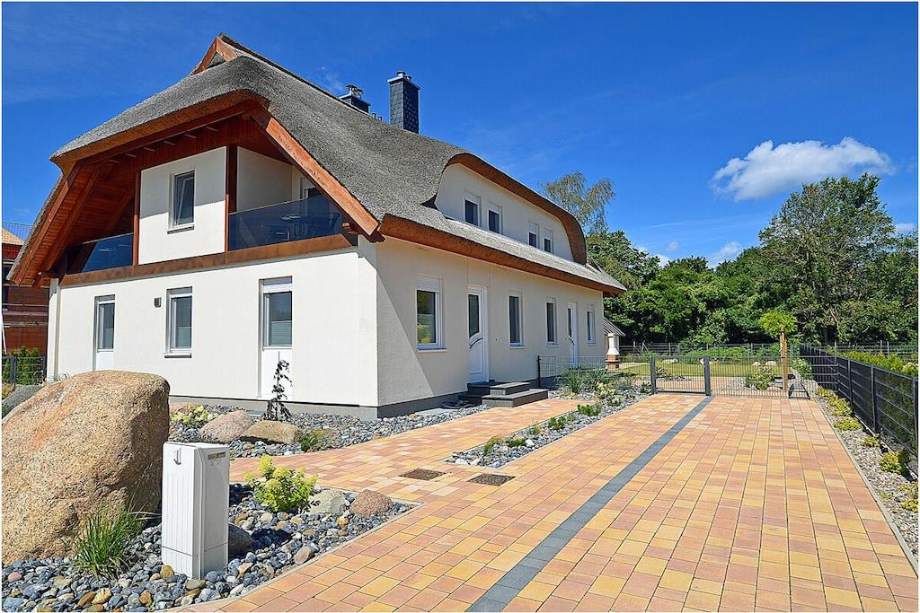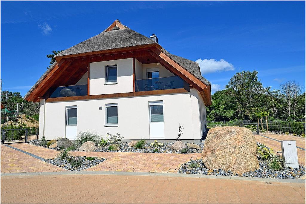 Modernes Reetdachhaus mit Kamin, WLAN und Garten in Glowe für entspannte Urlaubstage.