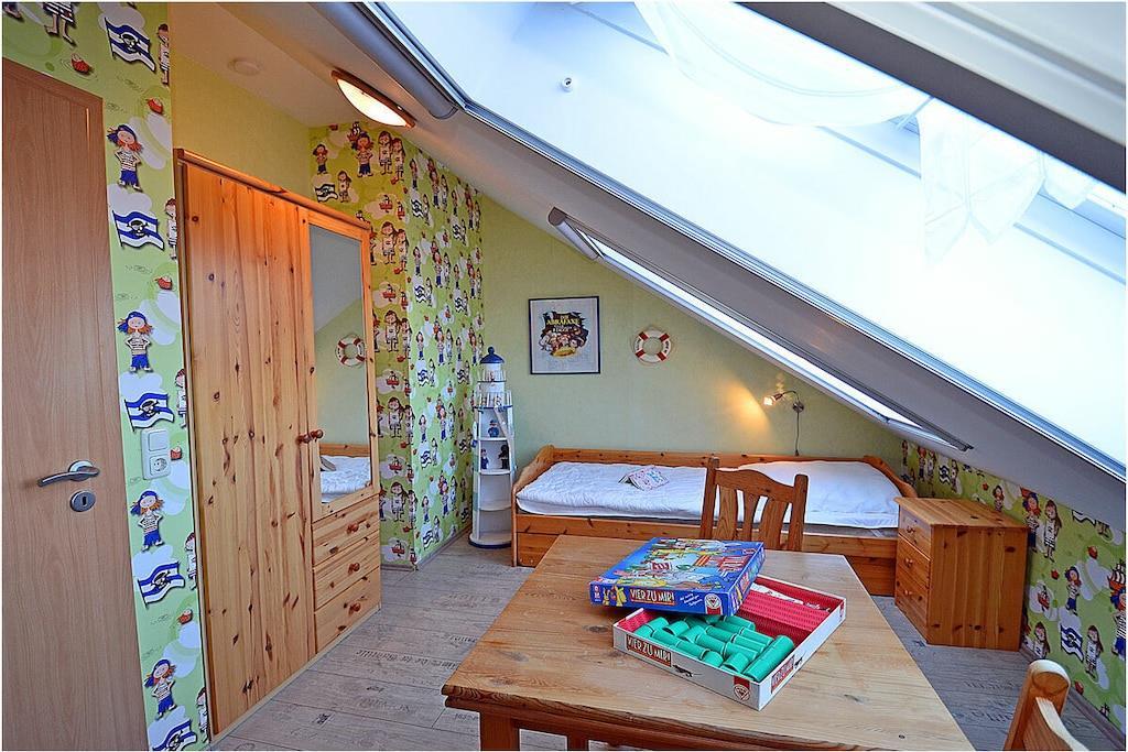 Erdgeschoss: großzügiger Wohn-, Essbereich mit Fußbodenheizung, gemütlicher Couchlandschaft und TV-Sat (Flatscreen), Musikanlage/CD-Player, DVD-Player, Blu-ray Player, Internet (WLAN), Gesellschaftsspiele und Bücher für gemütliche Abende, komplett ausgestattete moderne Einbauküche mit Esstisch, Ceranherd, Kühlschrank mit kleinem Gefrierfach, Geschirrspüler, Mikrowelle und diversen Elektrogeräten, großem Badezimmer mit Dusche/WC/Föhn. Obergeschoss: 2. Schlafzimmer mit je einem Doppelbett (getrennte Matratzen jeweils 90 x 200), Balkon und Kleiderschrank, 1. Kinderzimmer mit einem Einzelbett (90 x 200) und 1 Tandembett (90 x 2,00) (Einzelbett mit Ausziehfunktion (80 x 1,90)und Kleiderschrank, kleines Badezimmer mit Dusche und WC. Außenbereich: Terrasse mit gemütlichen Gartenmöbeln (6 Gartenstühle) und großem Sonnenschirm lädt zum Relaxen ein, Grillmöglichkeit besteht (Grill vorhanden), 1 PKW Stellplatz direkt am Objekt, Fahrradabstellmöglichkeiten (abschließbar) vorhanden.