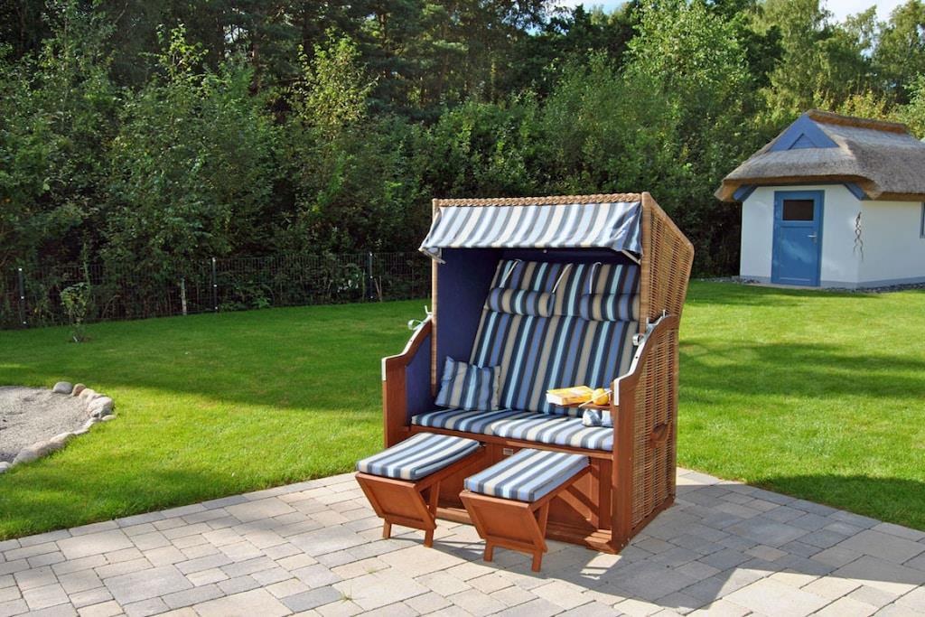 Komfortables Ferienhaus Dünenrose in Glowe mit Sauna, Kamin und direktem Waldzugang, nur 500 m vom Ostseestrand entfernt.