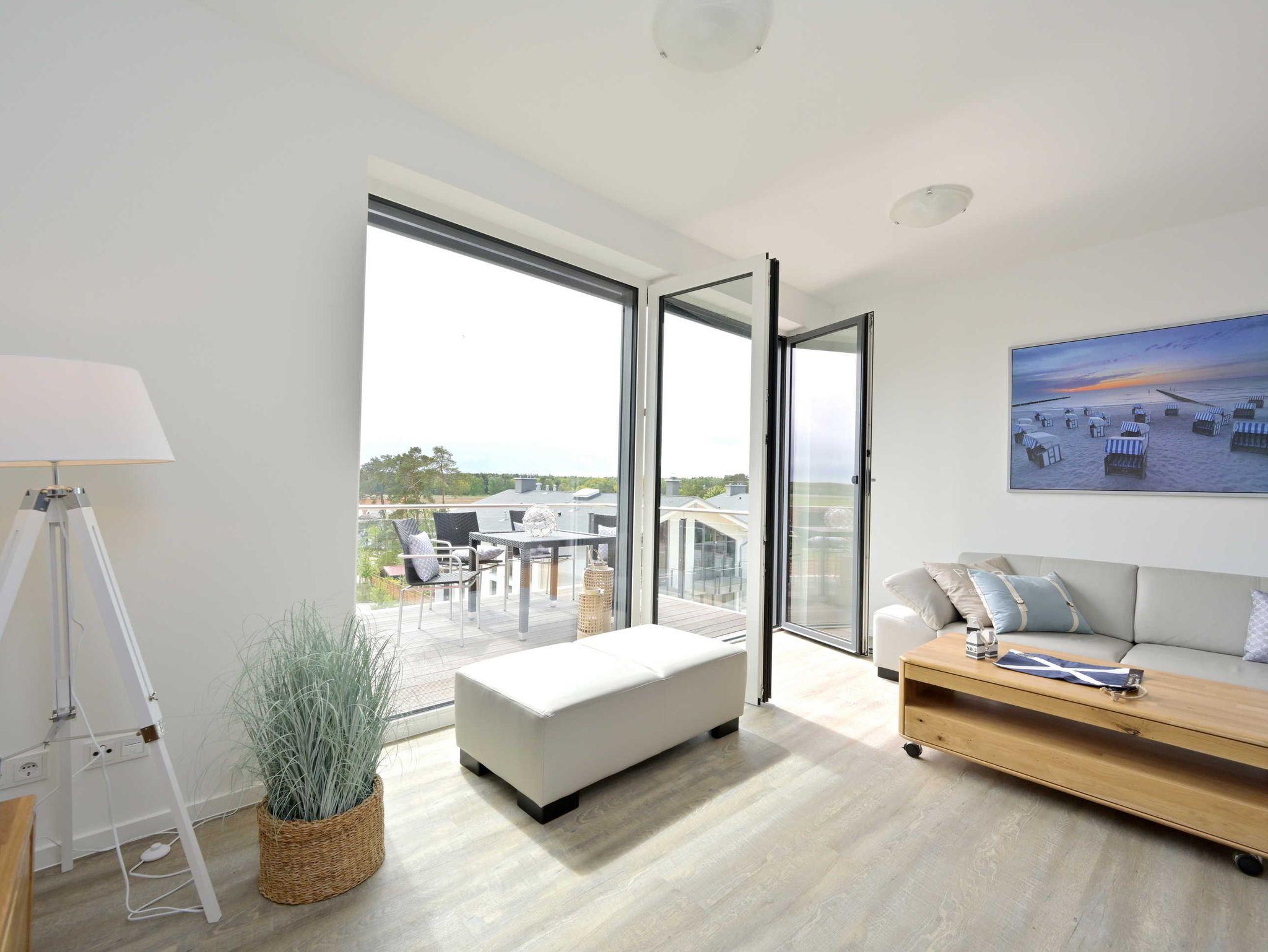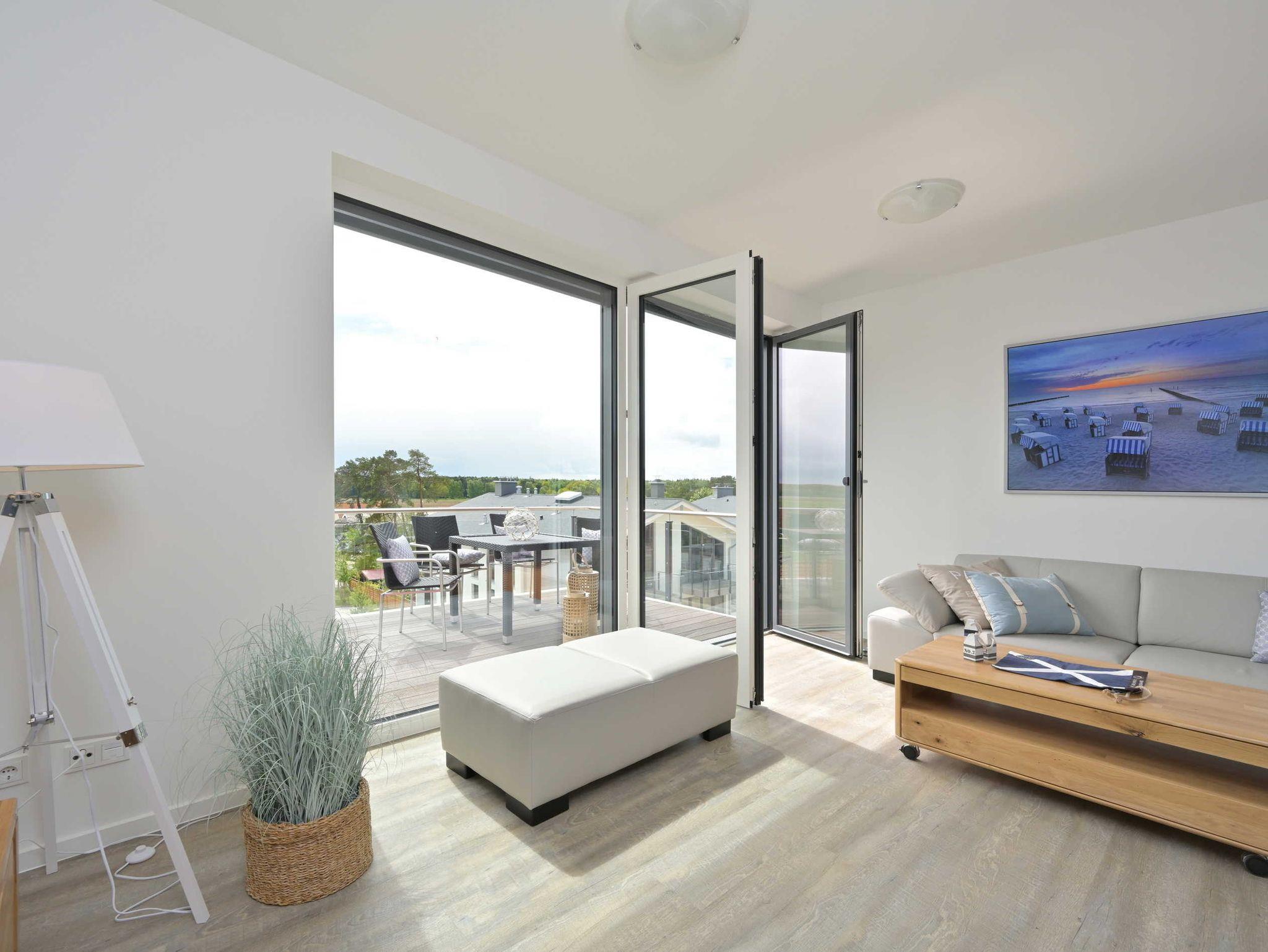 Moderne Ferienwohnung ArkonaPanorama in Glowe mit Balkon, Sauna, WLAN und Tiefgaragenstellplatz, nur 200 m vom Strand entfernt.