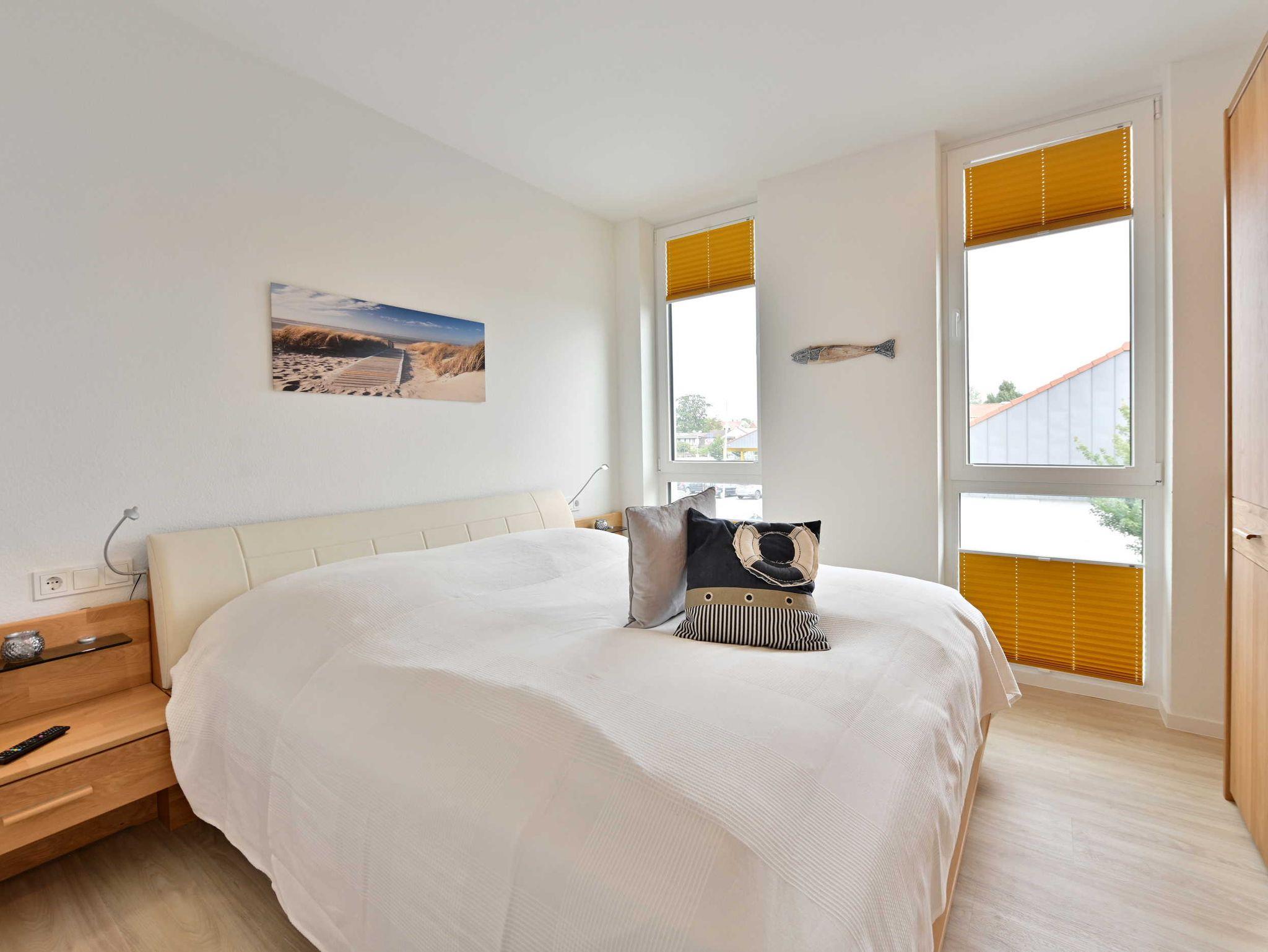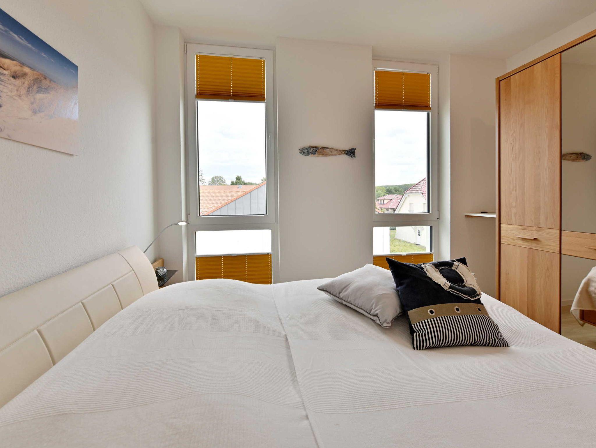 Das Domizil verfügt über ein Schlafzimmer mit einem großen Doppelbett, einen großzügigen Wohnraum mit Schlafcouch (110x200cm) und integrierter Küche, angeschlossenem Balkon sowie ein Badezimmer mit ebenerdiger Dusche.