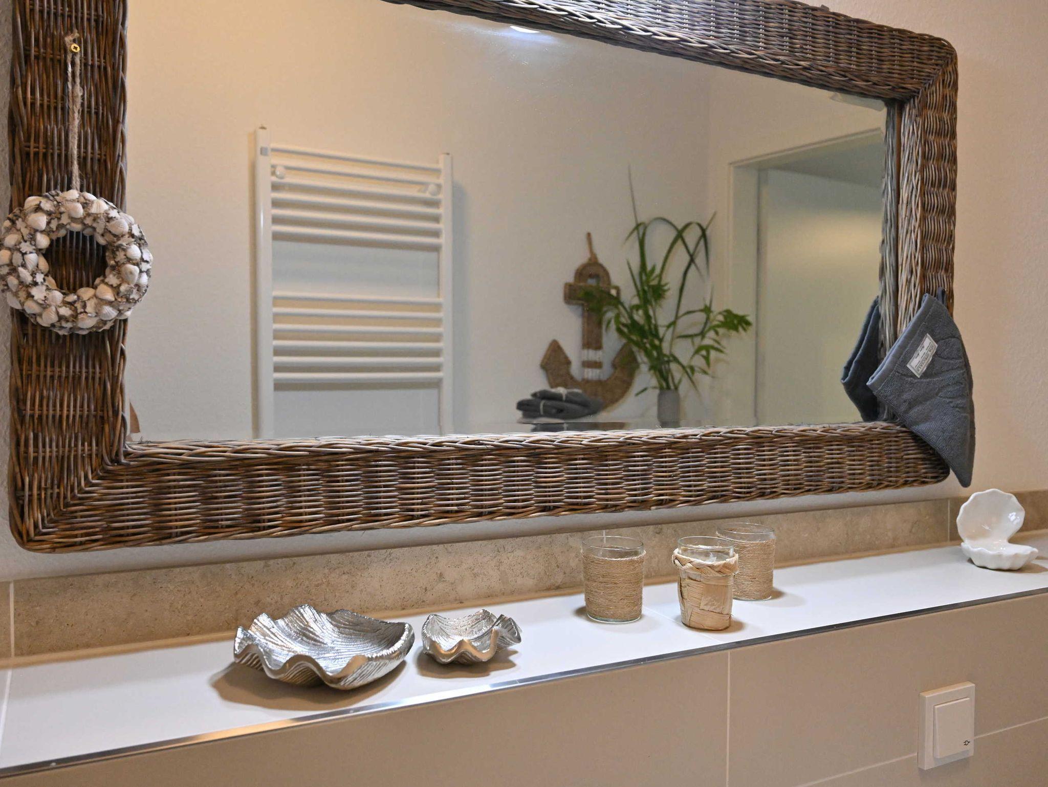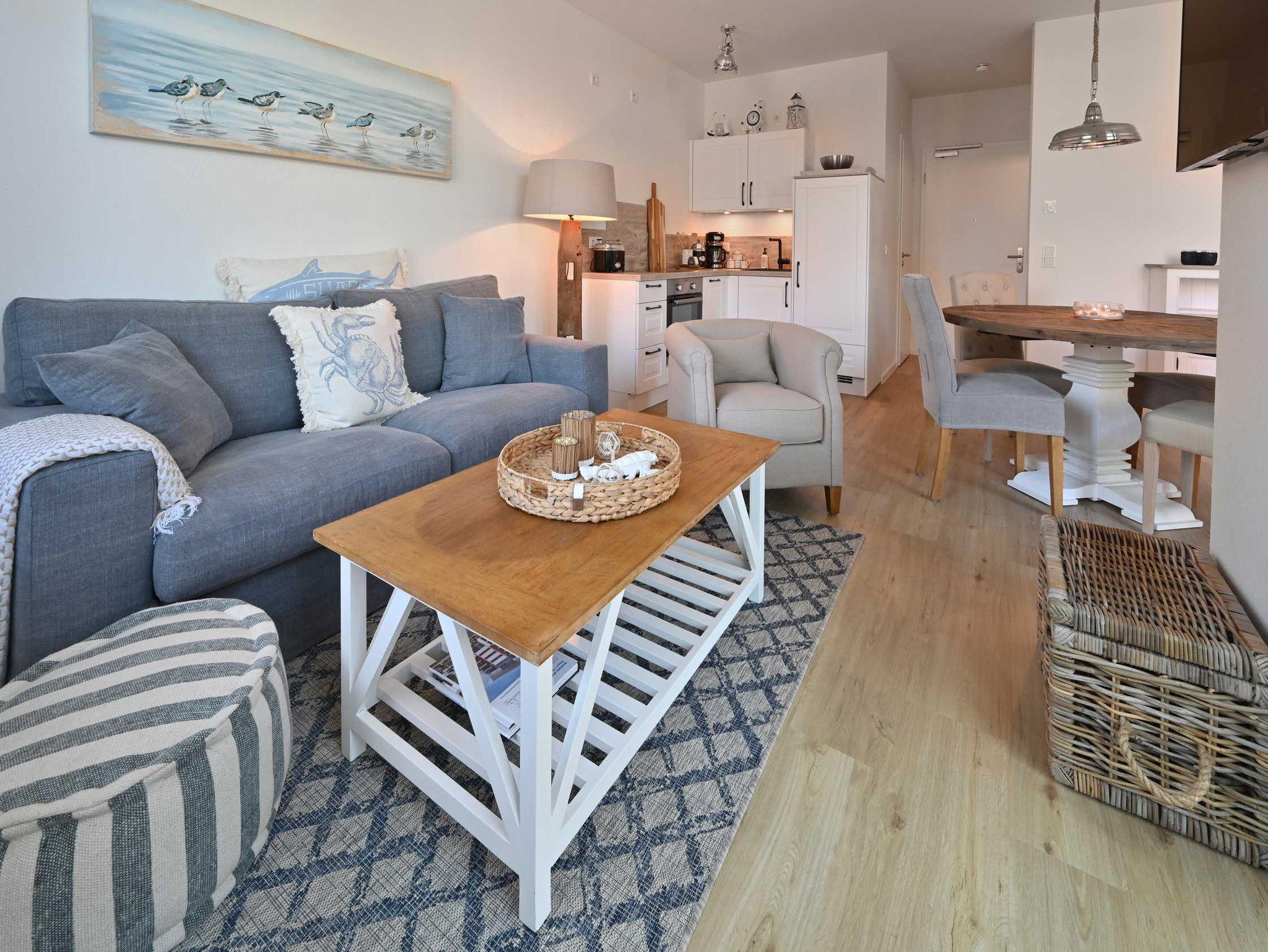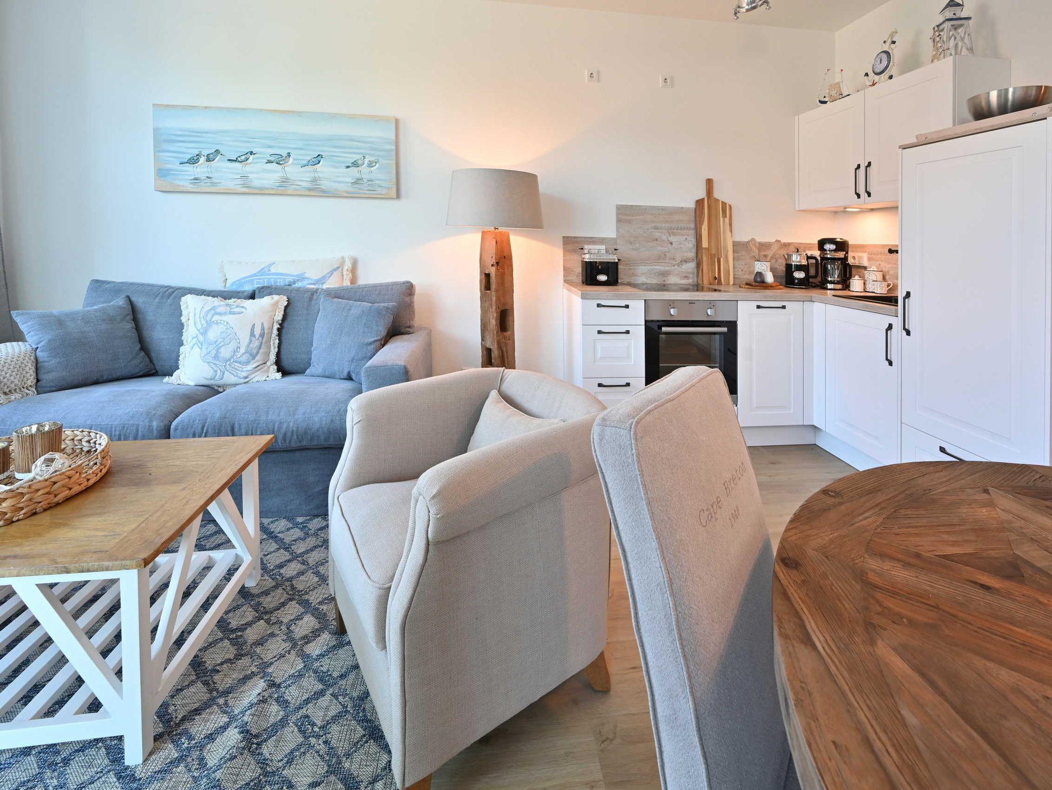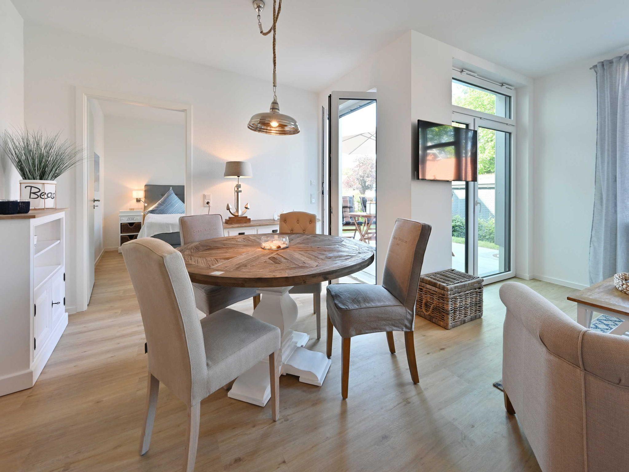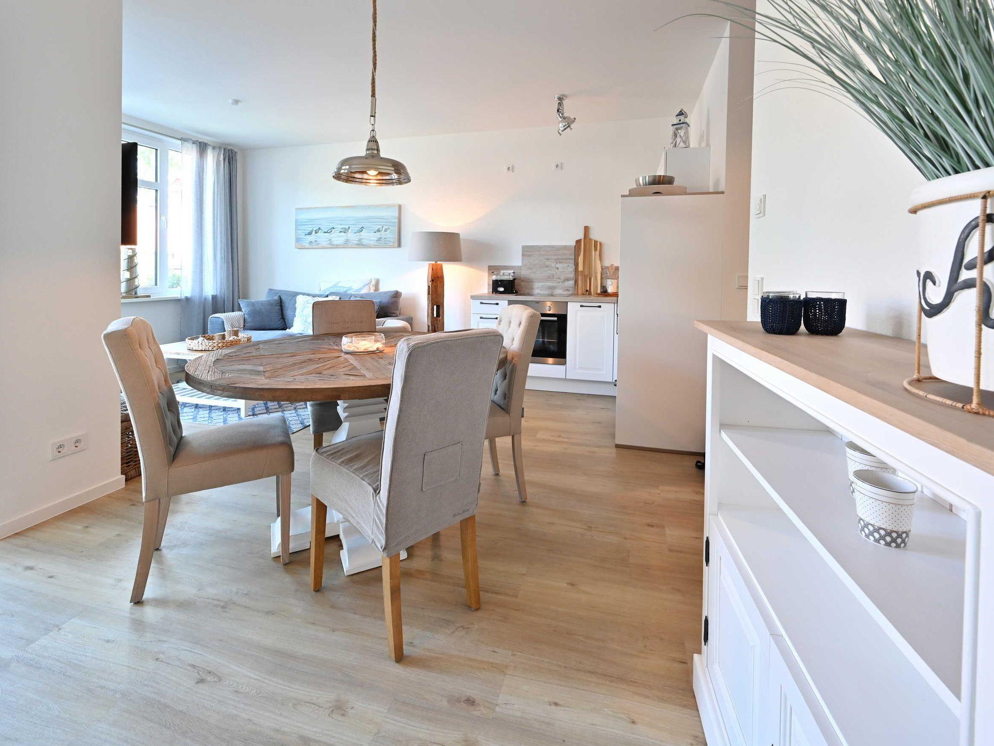 Die Ferienwohnung TreibGood in Glowe bietet modernen Komfort nahe dem Strand und eine Gemeinschaftssauna.