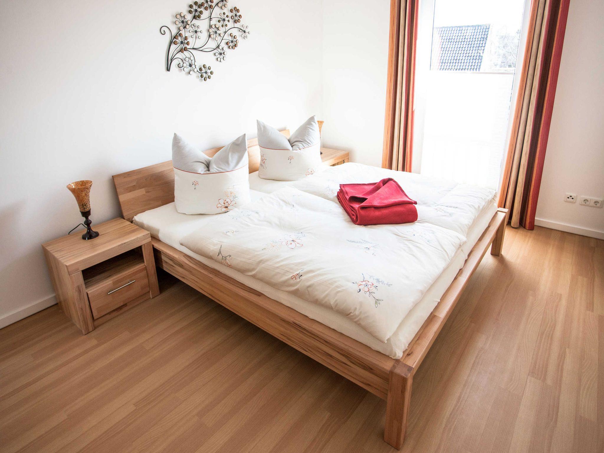 Die Ferienwohnung verfügt über ein Doppelbett im Schlafzimmer und eine Schlafcouch im Wohnbereich. Ein Kinder-/ Babybett kann zugestellt werden.
