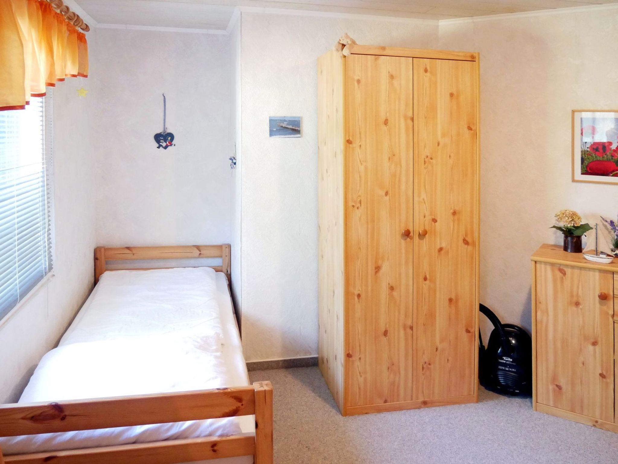• ein Schlafzimmer mit Doppel- und Einzelbett sowie einem Kleiderschrank,