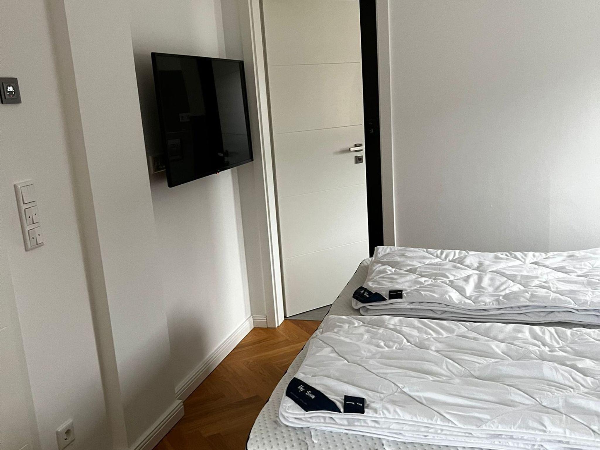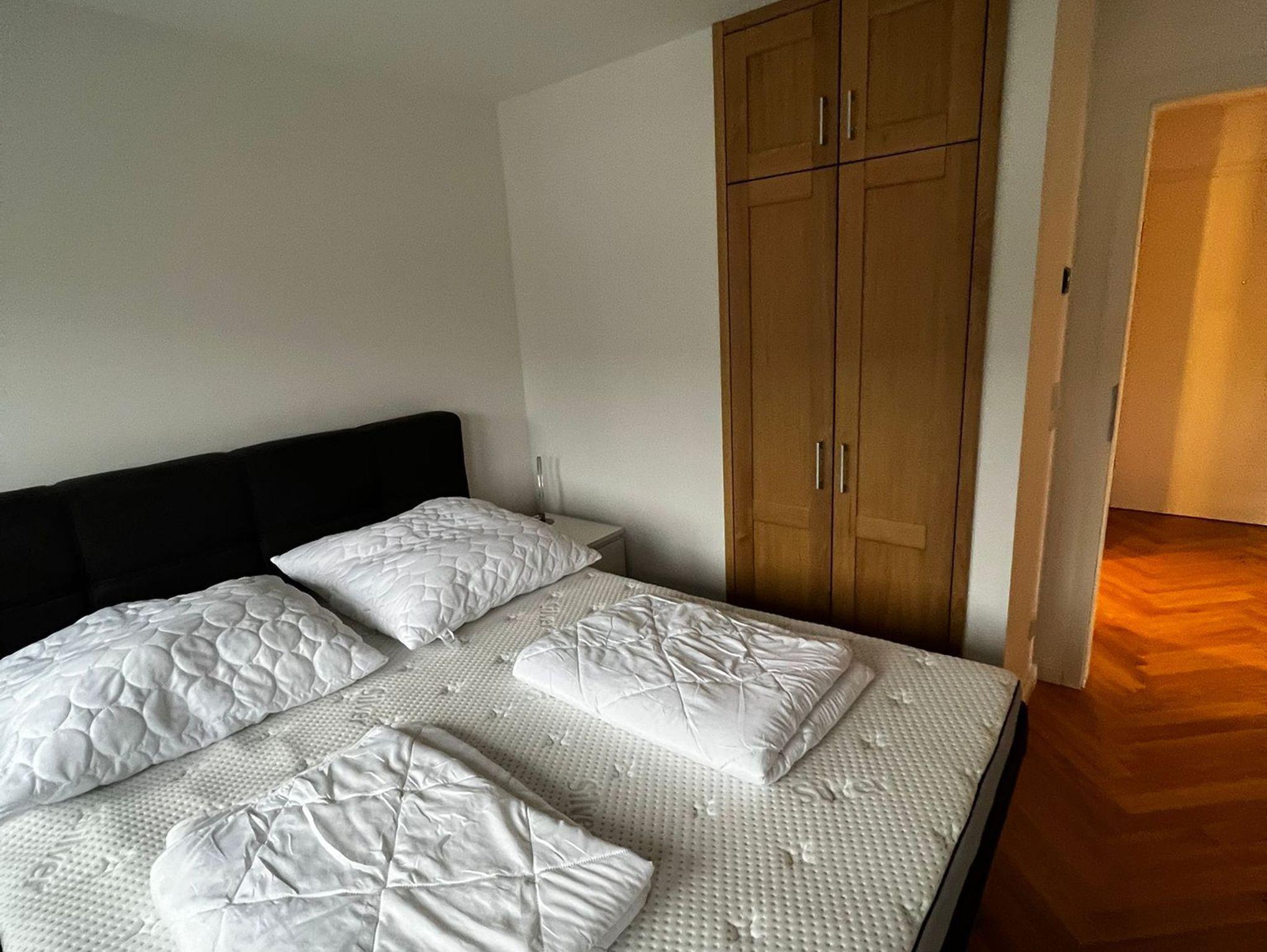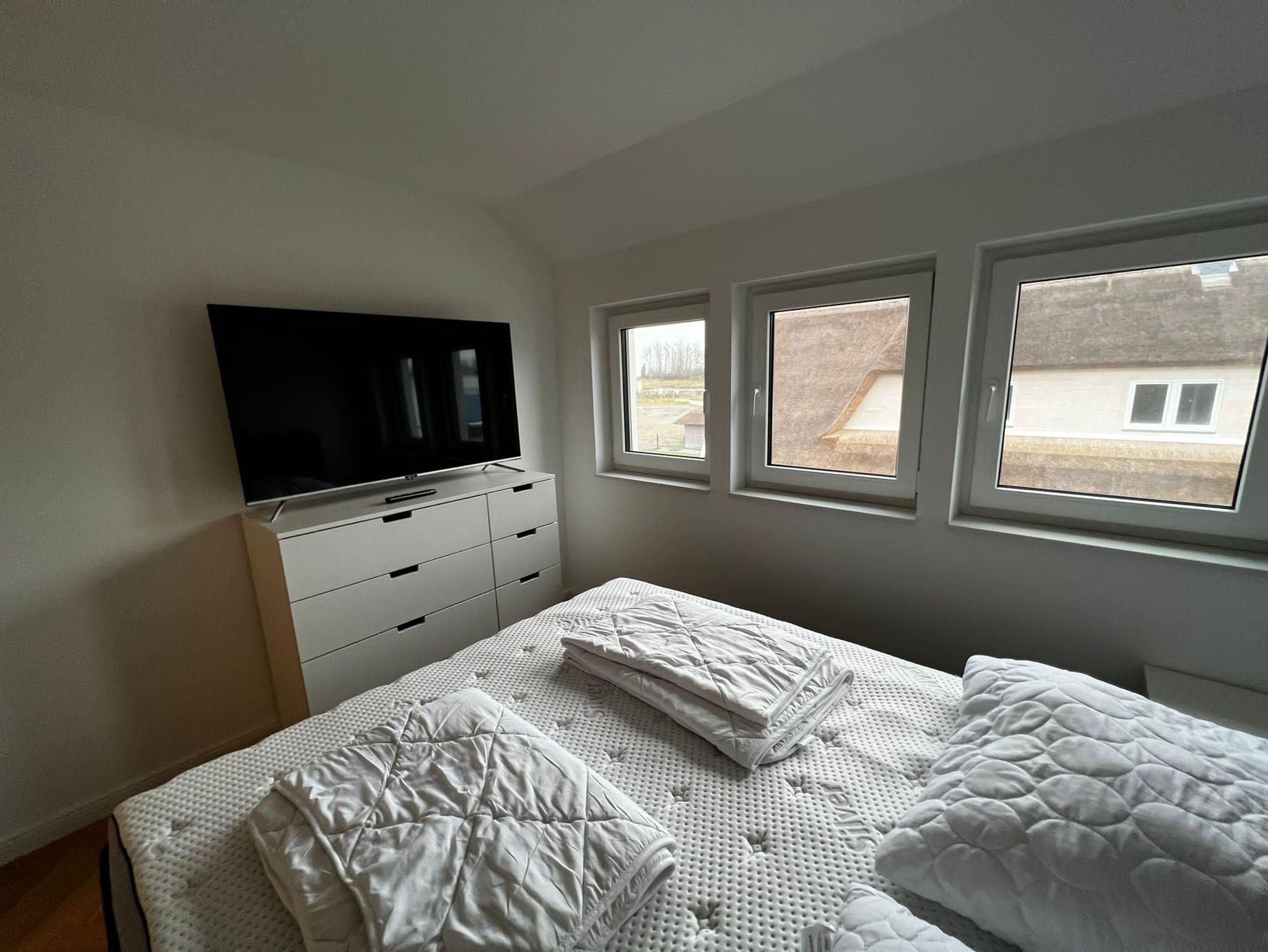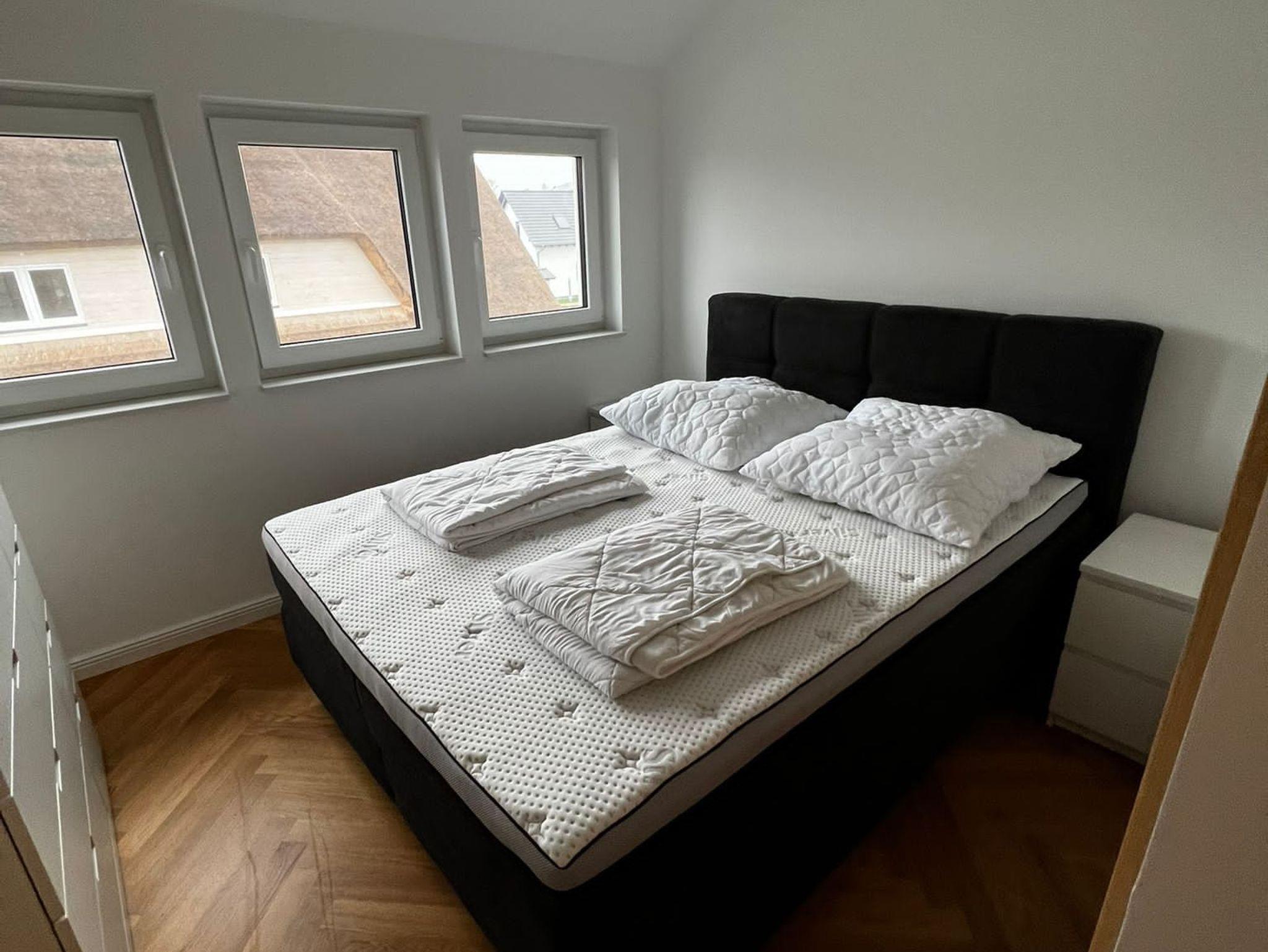 Die Schlafzimmer verfügen jeweils über ein Doppelbett und einen geräumigen Schrank.