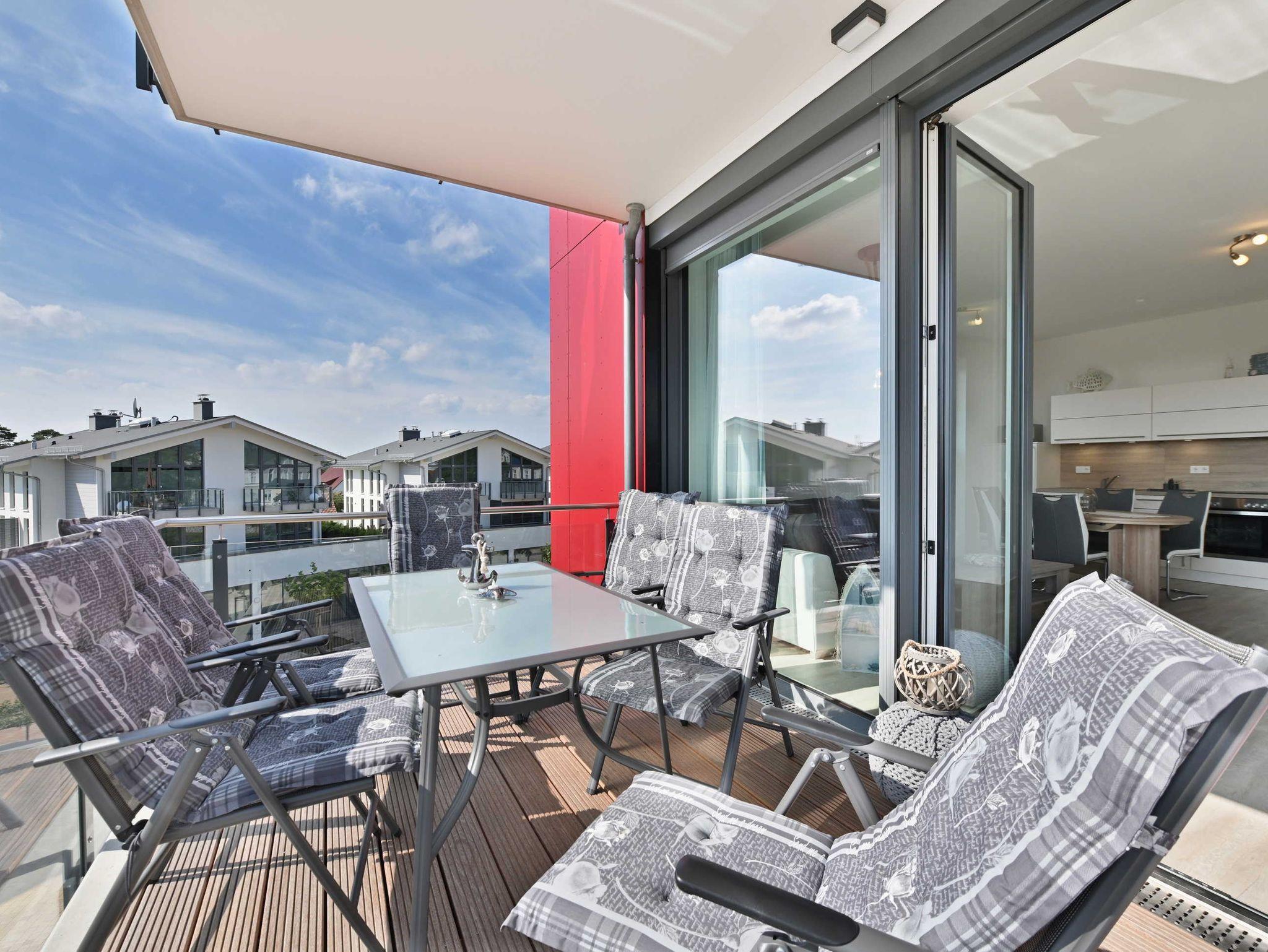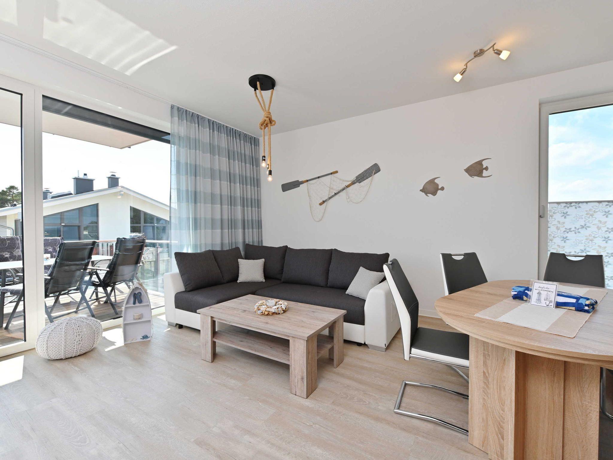 Moderne Ferienwohnung im Zentrum von Glowe nahe dem Strand mit Balkon und Gemeinschaftssauna.