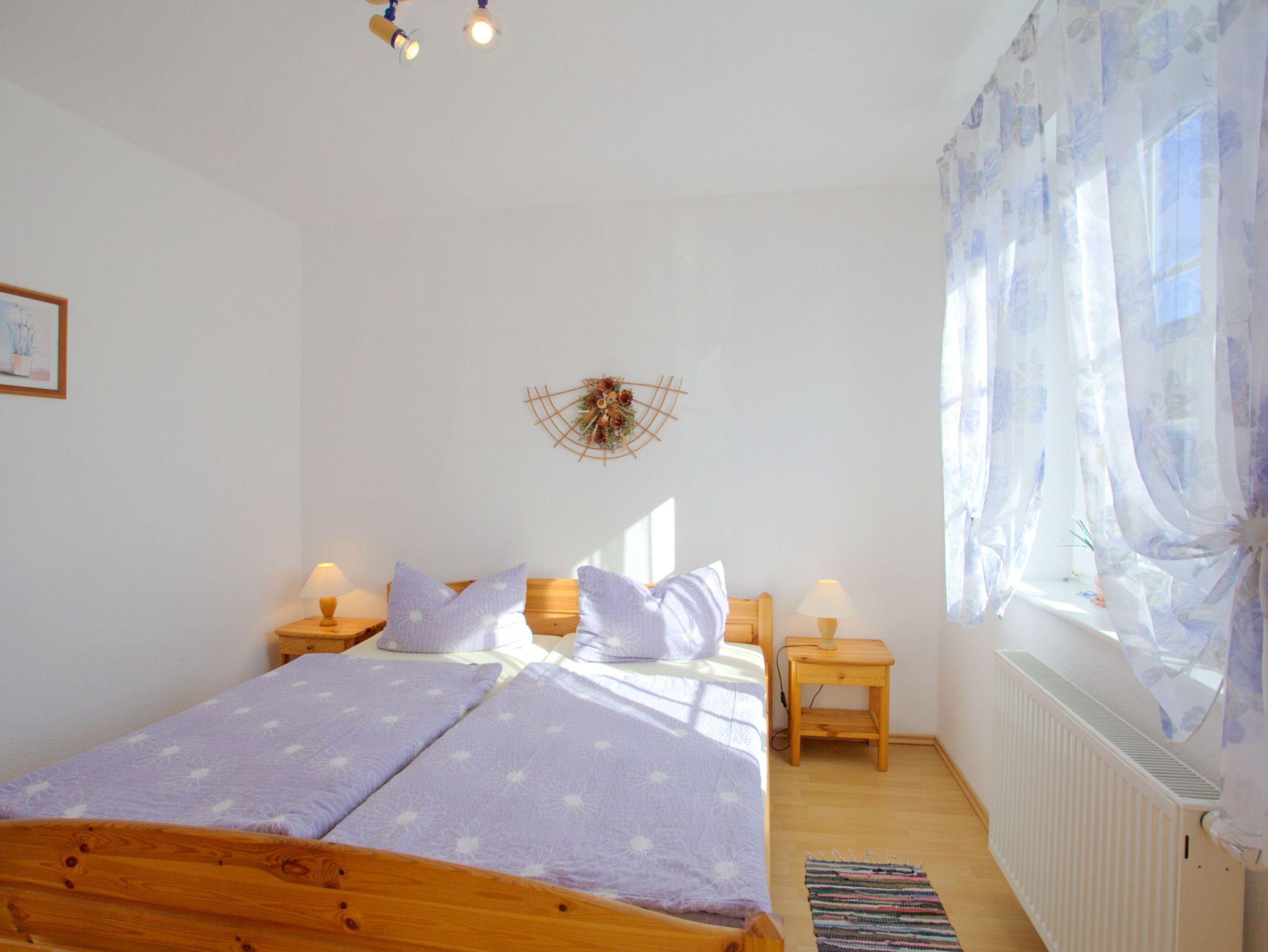 Die ebenerdige Ferienwohnung besteht aus 2 Schlafzimmern mit Doppelbetten, einem Wohnzimmer mit Schlafcouch und einer Abstellkammer.