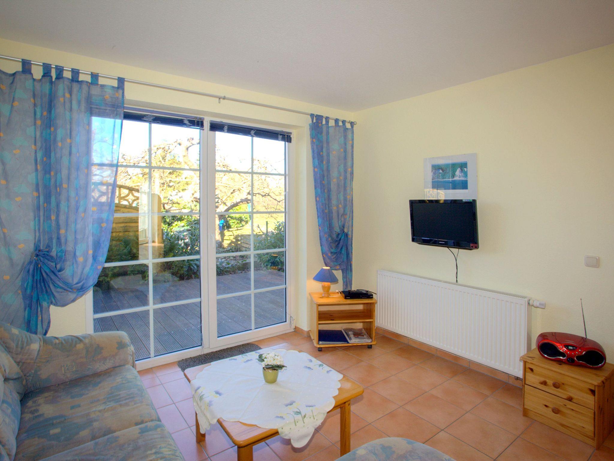 Gemütliche Ferienwohnung in Glowe, nur 300 Meter vom Ostseestrand, mit Terrasse, Parkplatz und Motorbootverleih.