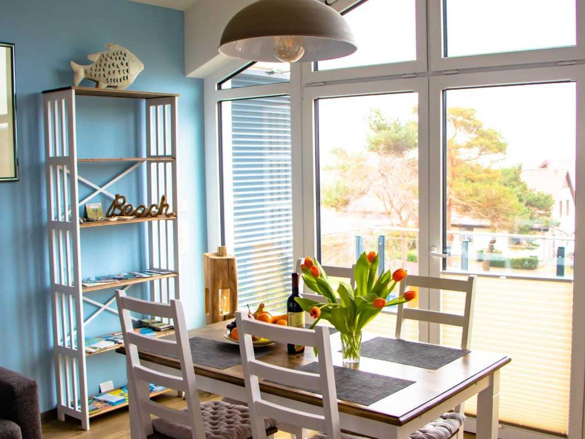 Die Ferienwohnung Stella Maris in Glowe bietet Komfort, Balkon mit Boddenblick und Gemeinschaftssauna nahe dem feinsandigen Ostseestrand.