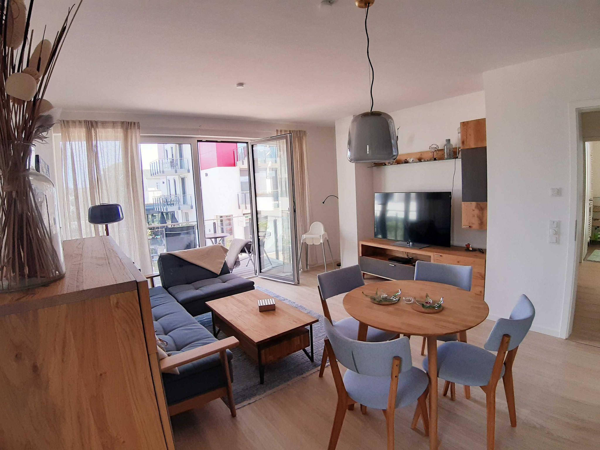 Die Ferienwohnung befindet sich im neu erbauten Bodden-Markt Glowe im Ortszentrum des Erholungsortes. Die Wohnung bietet auf ca. 71qm Wohnfläche einen gemütlichen Wohnraum mit integrierter Küche, einen Schlafraum mit Doppelbett und ein Bad mit ebenerdiger Dusche. Von den 2 Balkonen und einer zusätzlichen Dachterrasse genießen Sie eine fantastische Aussicht auf die Ostsee und das Kap Arkona, egal ob beim Sonnenauf- oder Sonnenuntergang.