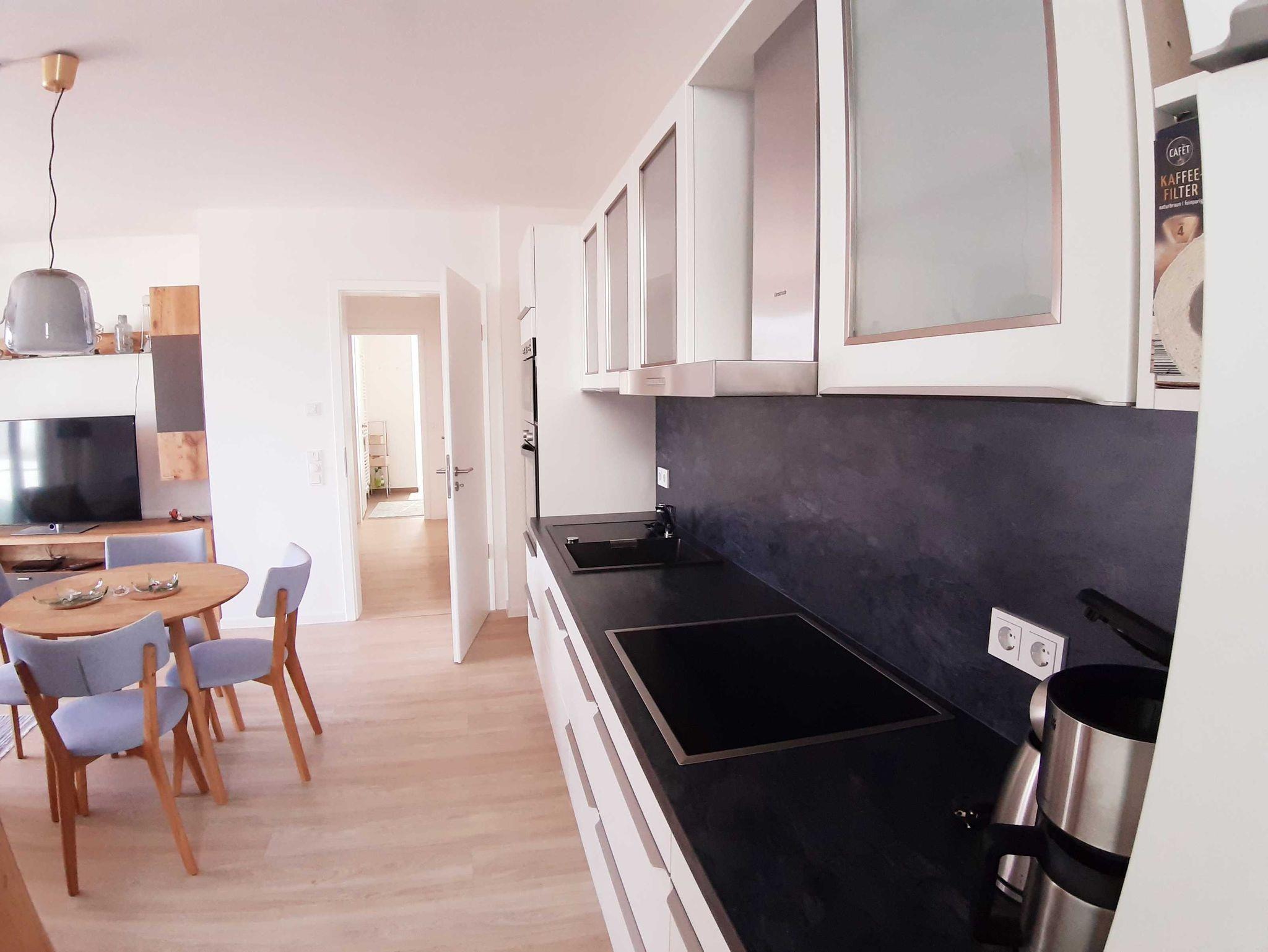 Küche mit Backofen & Herd, Geschirrspüler, Mikrowelle, Kaffeemaschine, Wasserkocher, Toaster, Kühlschrank mit Gefriermöglichkeit u.v.m.
