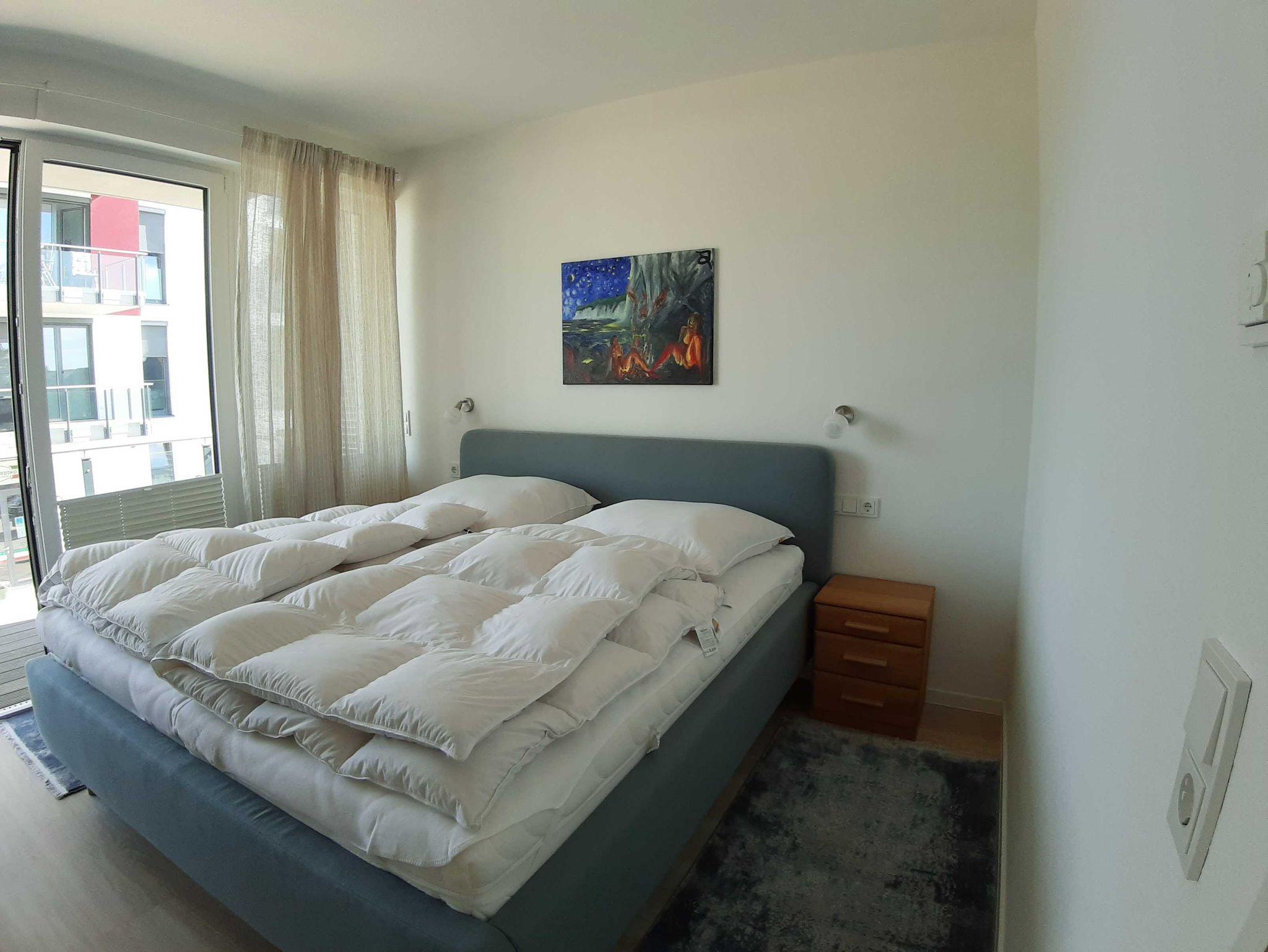 1 Schlafzimmer mit Doppelbett (180x200), Schlafcouch im WZ (120 x 210)