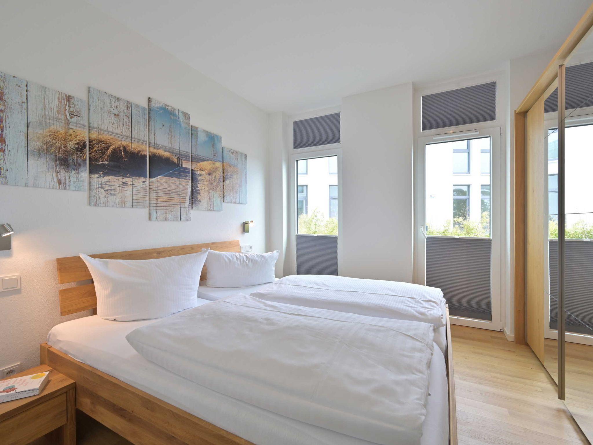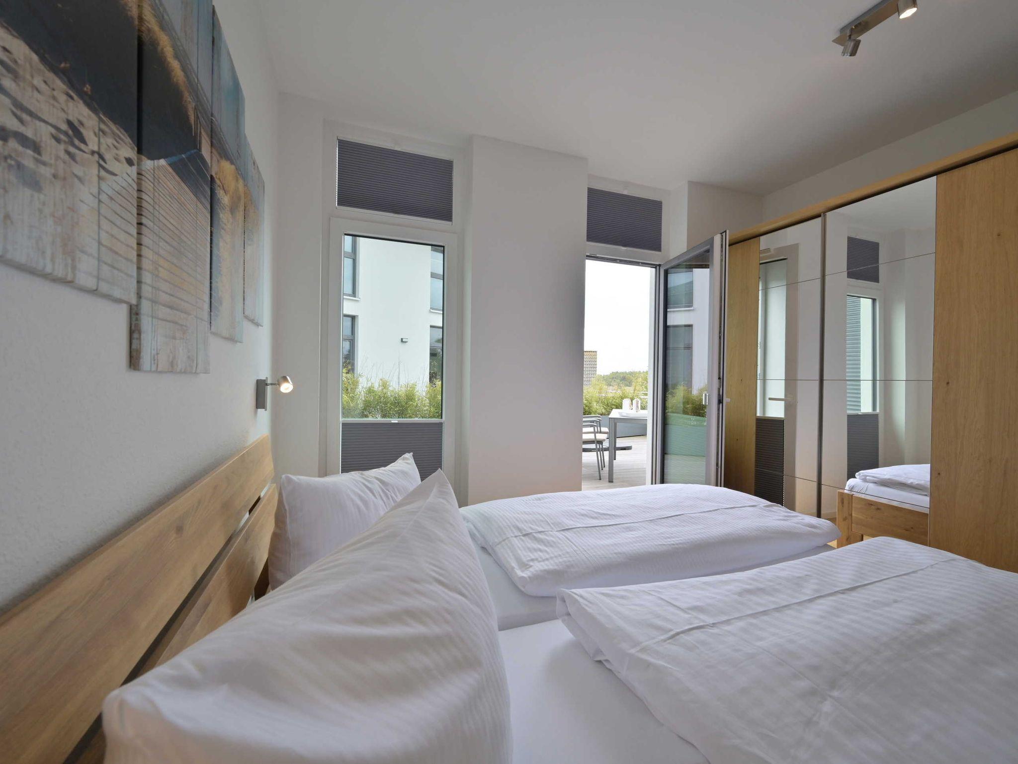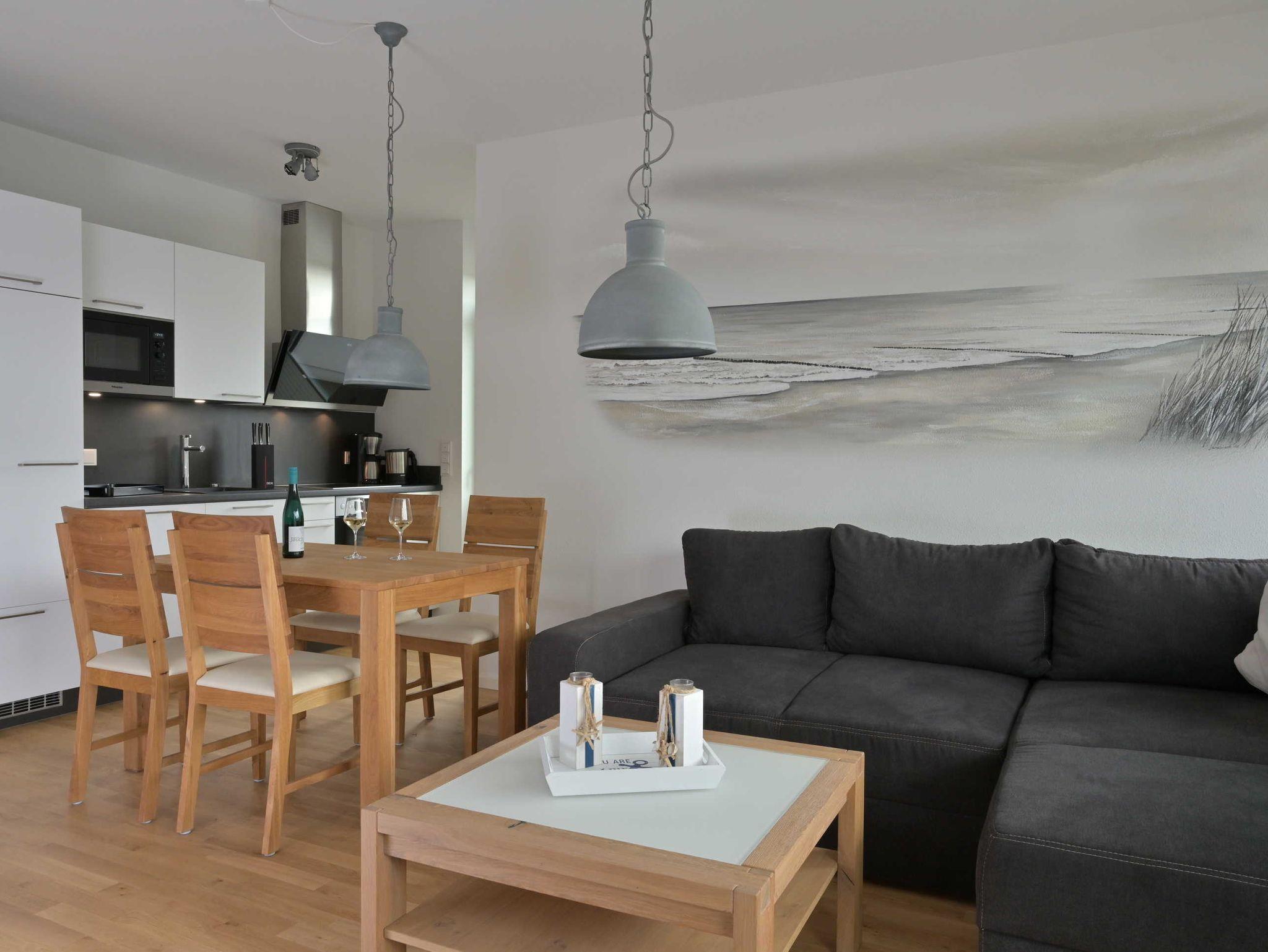Die Wohnung bietet auf 62qm einen gemütlichen Wohnraum mit integrierter Küche, einen Schlafraum mit Doppelbett und ein Bad mit Dusche. Die 30qm große Dachterrasse mit Strandkorb ist aus dem Wohn- wie auch aus dem Schlafbereich begehbar. Der Südbalkon ist ebenfalls aus dem Wohnbereich zu erreichen.