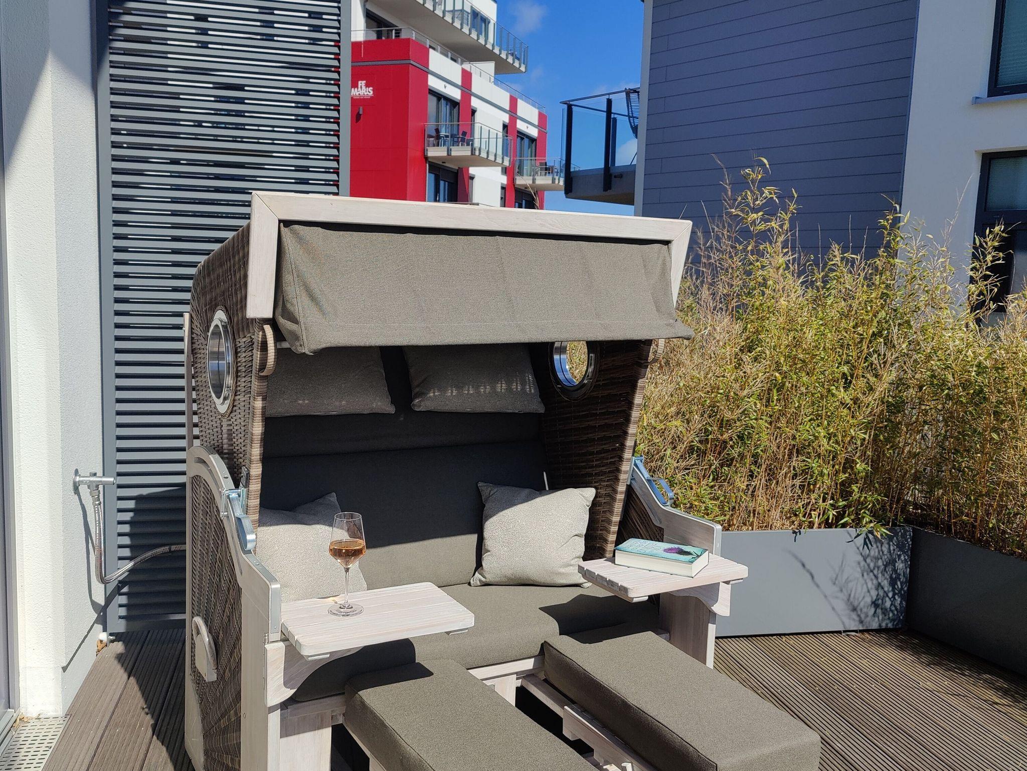 Moderne Ferienwohnung mit großer Dachterrasse und Sauna nahe dem feinen Ostseestrand in Glowe.