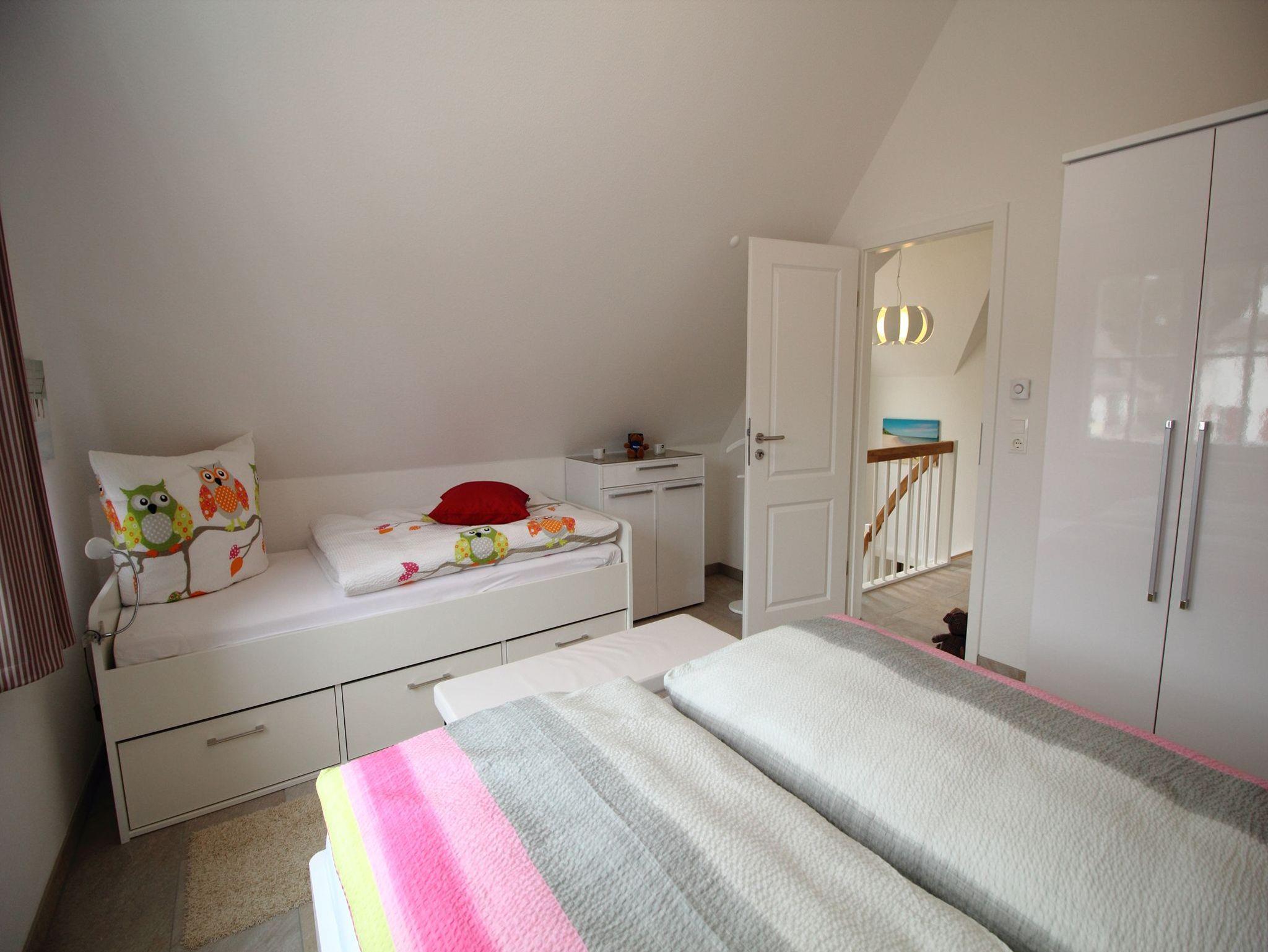 Im Obergeschoss finden Sie 2 freundliche Schlafzimmer vor: