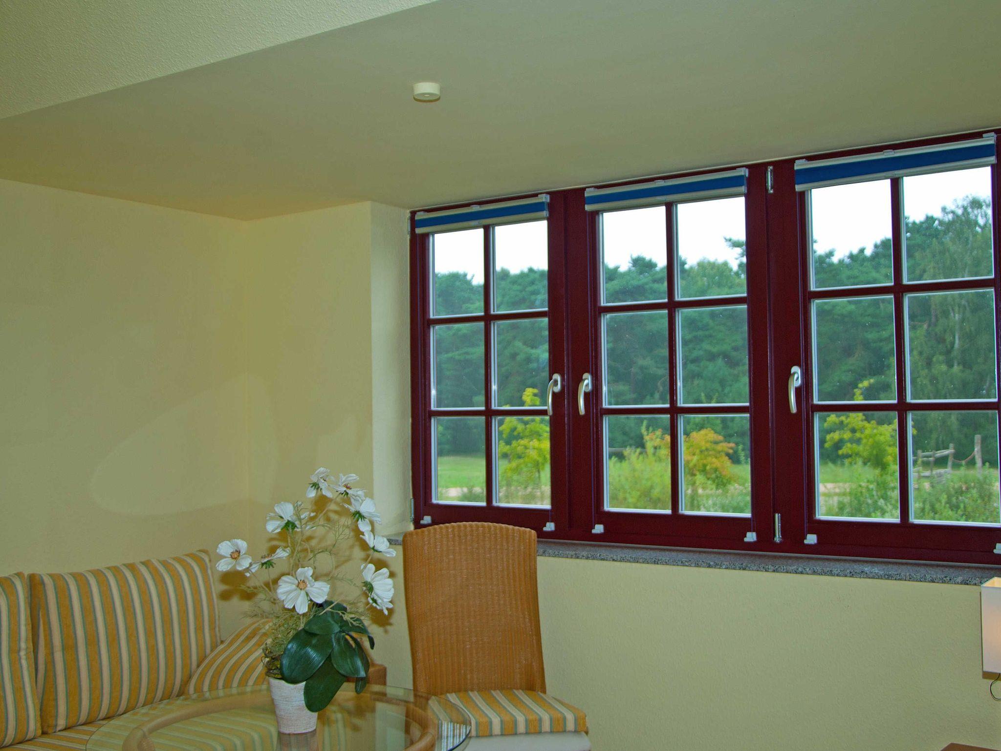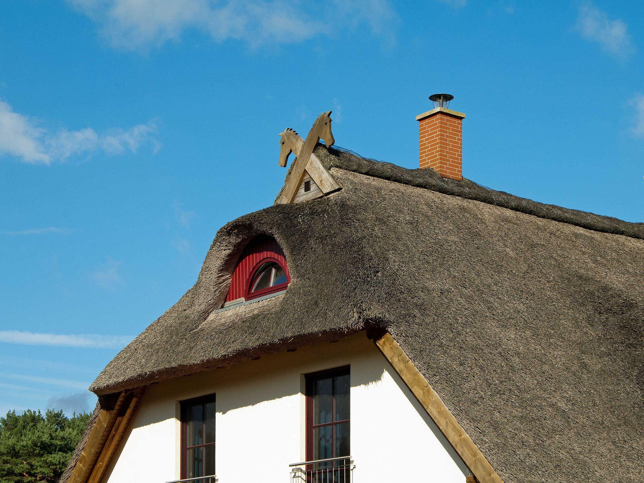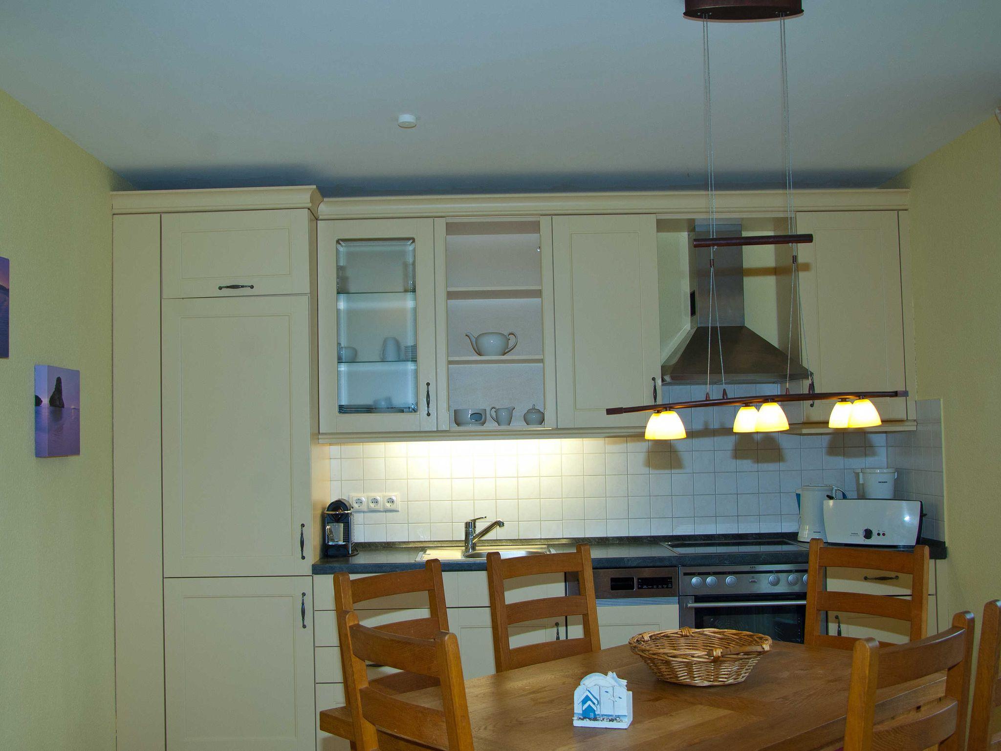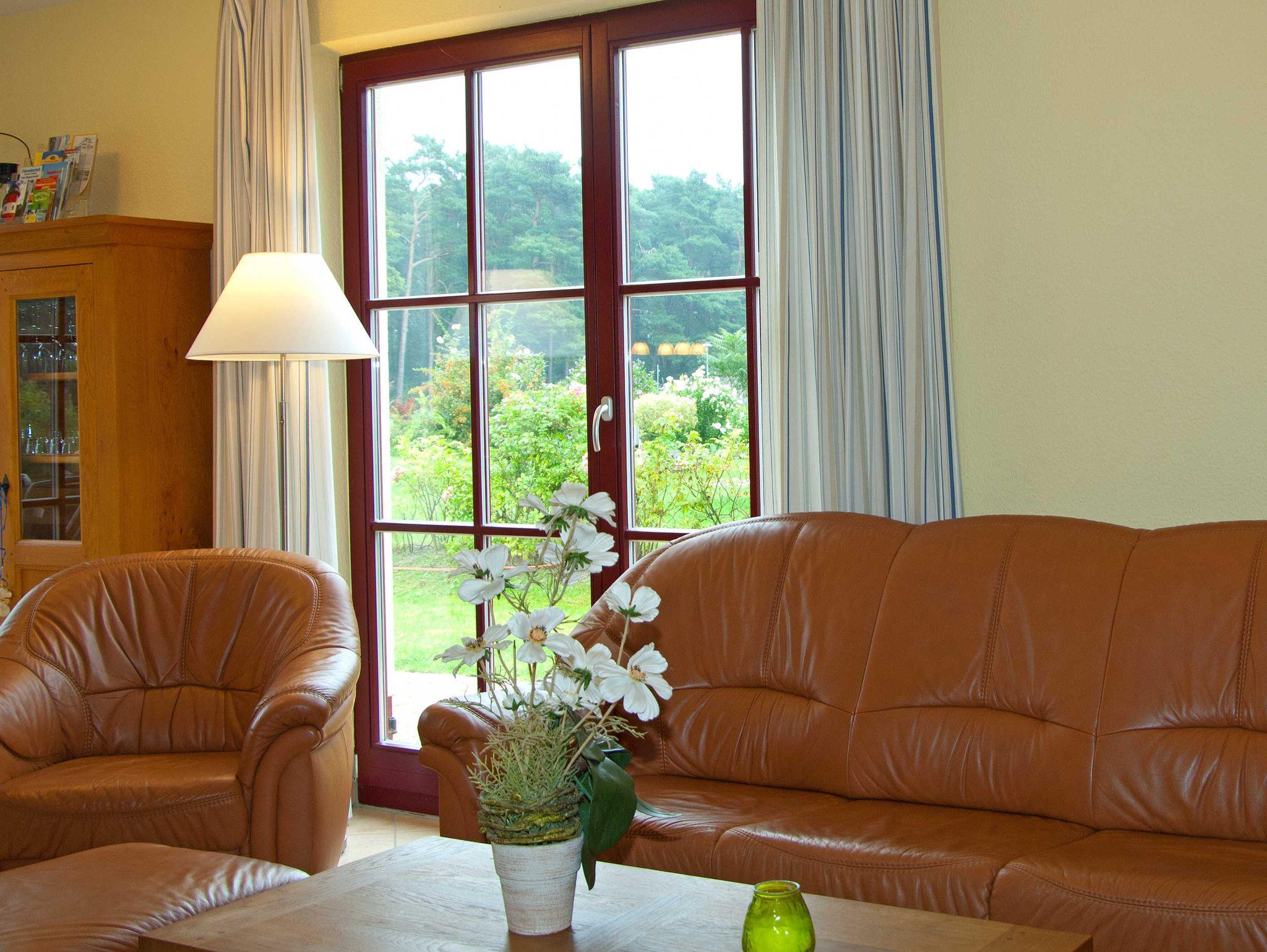 Im Wohnbereich werden Sie sich auch mal bei schlechtem Wetter sehr wohlfühlen. Die Einrichtung mit massiven Eichenmöbeln ist auf den gemütlichen Stil des Hauses mit dem Reetdach abgestimmt. Zum Entspannen finden Sie dort eine riesige Sofaecke aus feinstem Leder. Wenn dann das Kaminfeuer flackert, erlebt man bestimmt romantische Abende. Sollten Sie mit Kindern die Ferien geniessen, so werden Sie auch die Entertainmentaustattung mit Flachbildschirm und hunderten Programmen schätzen. Auch die Stereoanlage können Sie gern richtig aufdrehen, denn durch die massive Bauweise kann Sie garantiert kein Nachbar hören.