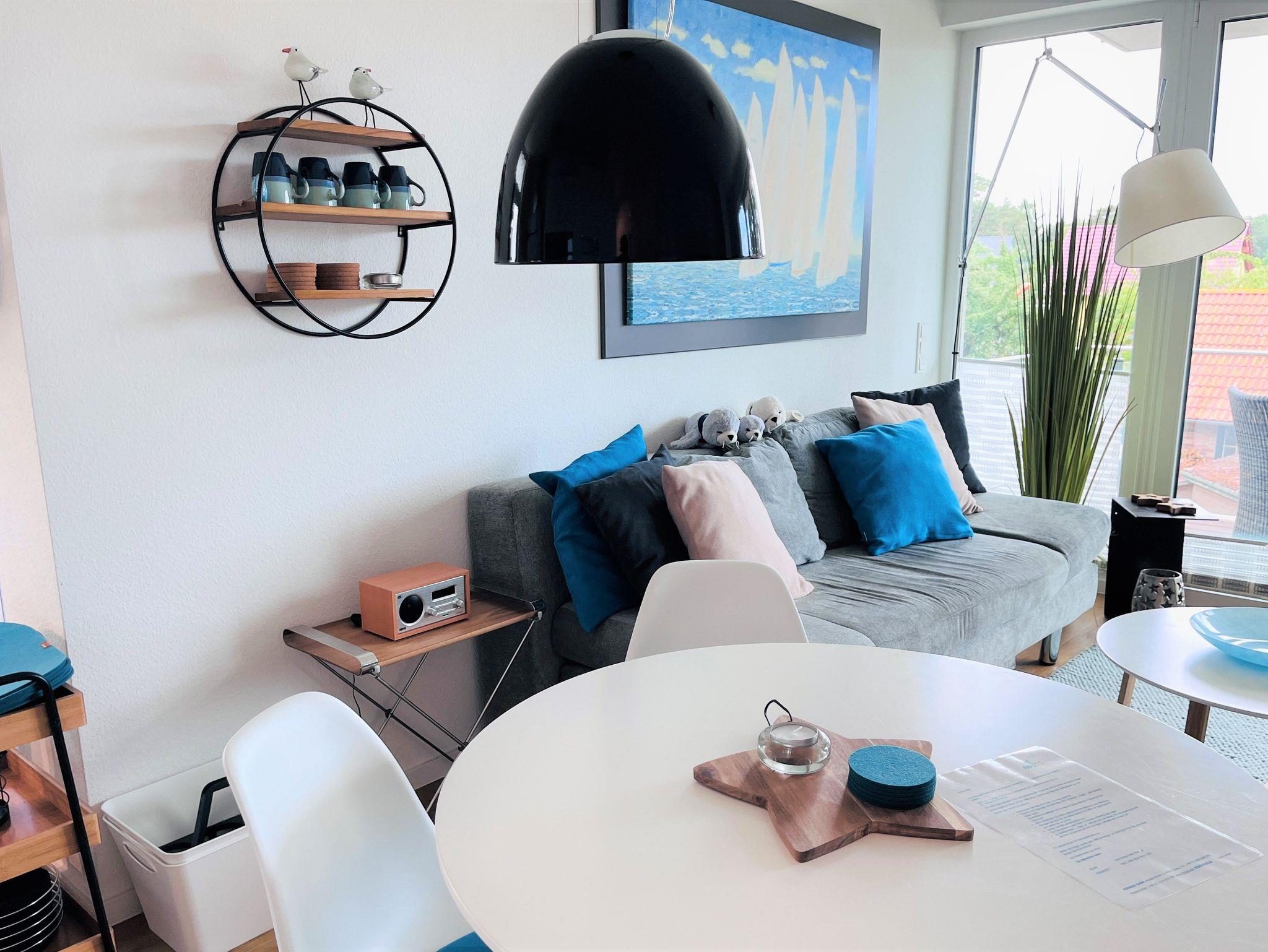 Die Ferienwohnung Kleine Robbe in Glowe bietet moderne Ausstattung, Strandnähe und eine große Dachterrasse mit Strandkorb.