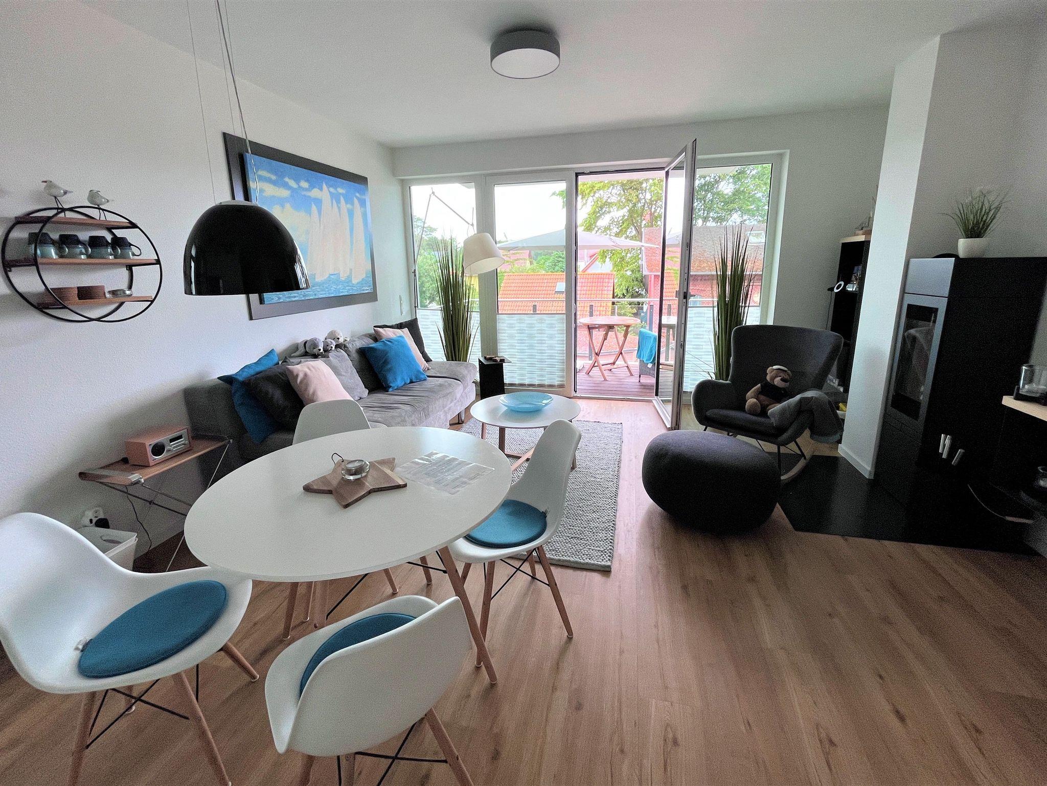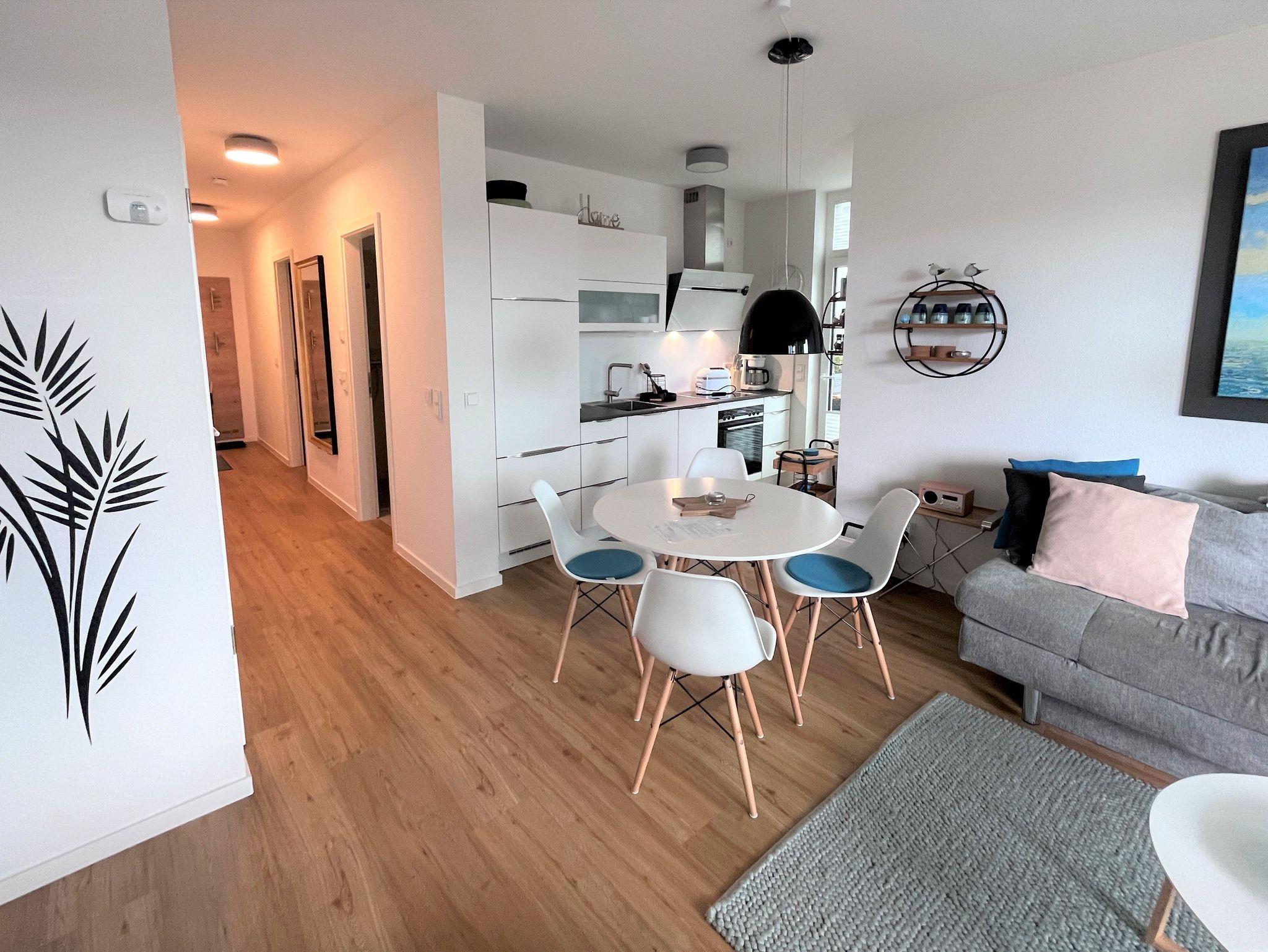 Die schöne und nigelnagelneue Ferienwohnung Kleine Robbe befindet sich im Bodden-Markt Glowe nur 2 min vom Strand entfernt.
