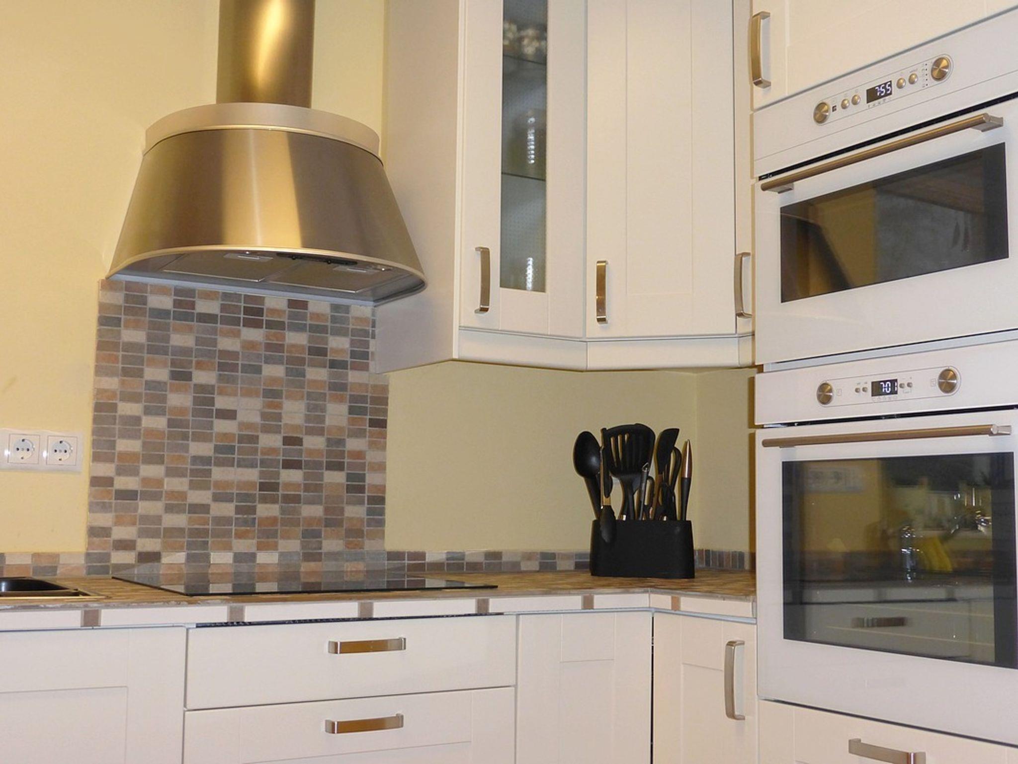 - offene Küche mit kompletter Küchenzeile (4-Plattenherd, Geschirrspüler, Gefrierkombi,