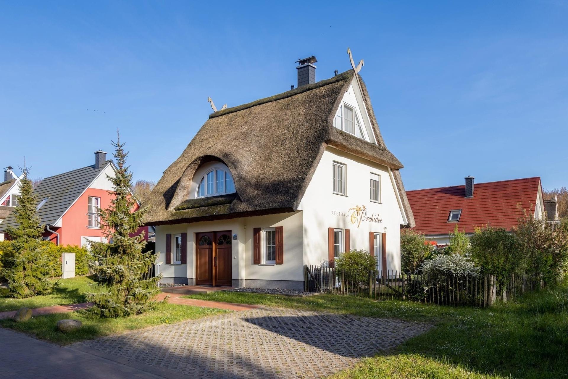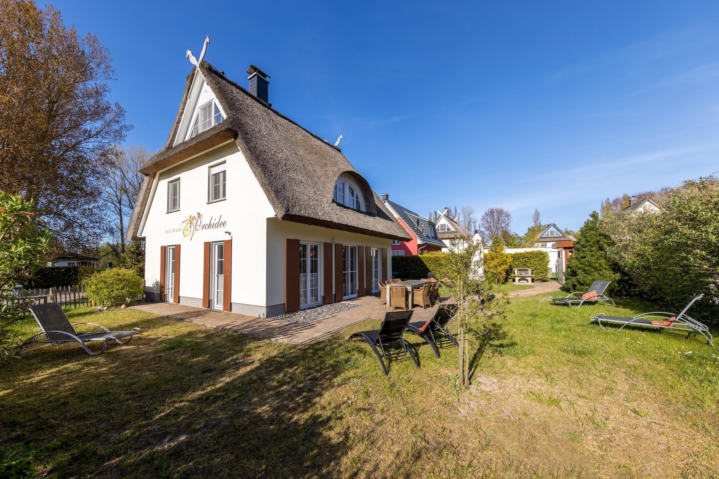 Willkommen im exklusiven Reetdachhaus Orchidee, einem liebevoll gestalteten Refugium im Erholungsort Glowe auf der Insel Rügen. Dieses reetgedeckte Haus wurde vom DTV mit der Höchstpunktzahl von 5 Sternen ausgezeichnet und bietet eine Wohnfläche von 125 m².