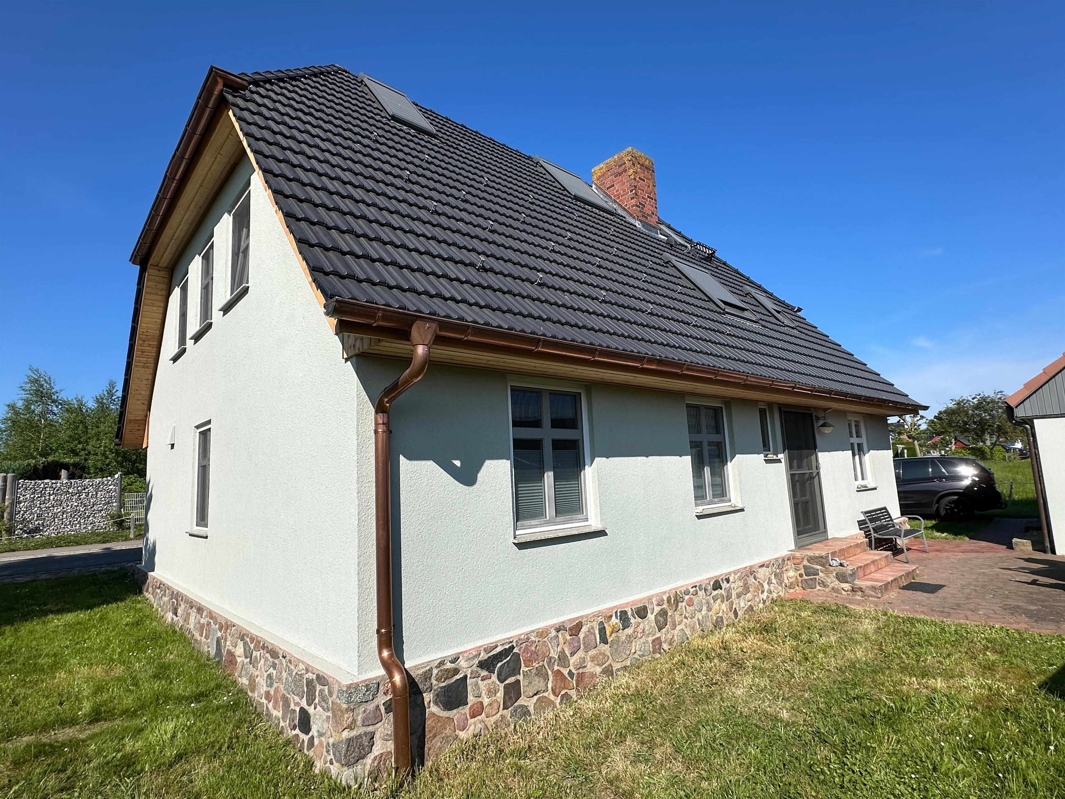 Die Ferienwohnung befindet sich im staatlich anerkannten Luftkurort Polchow. Sie wohnen im ersten Stock/Dach eines freistehenden ehemaligen Fischerhauses mit drei Ferienwohnungen. Die gemütliche Ferienwohnung mit viel Charme, Dielenböden und Dachschrägen wurde 2022 saniert und modern eingerichtet. Freuen Sie sich nach Ihren Aktivitäten auf der Insel auf Erholung und Ruhe in heimeliger Atomsphäre. Das Schlafzimmer ist mit einem 1,80 m breiten Bett und einem Kleiderschrank ausgestattet. Genießen Sie an sonnigen Tagen den Garten, den Sie auch zum Grillen nutzen können. Bitte haben Sie Verständnis dafür, dass wir Rauchen und Tierhaltung in der Wohnung nicht gestatten.