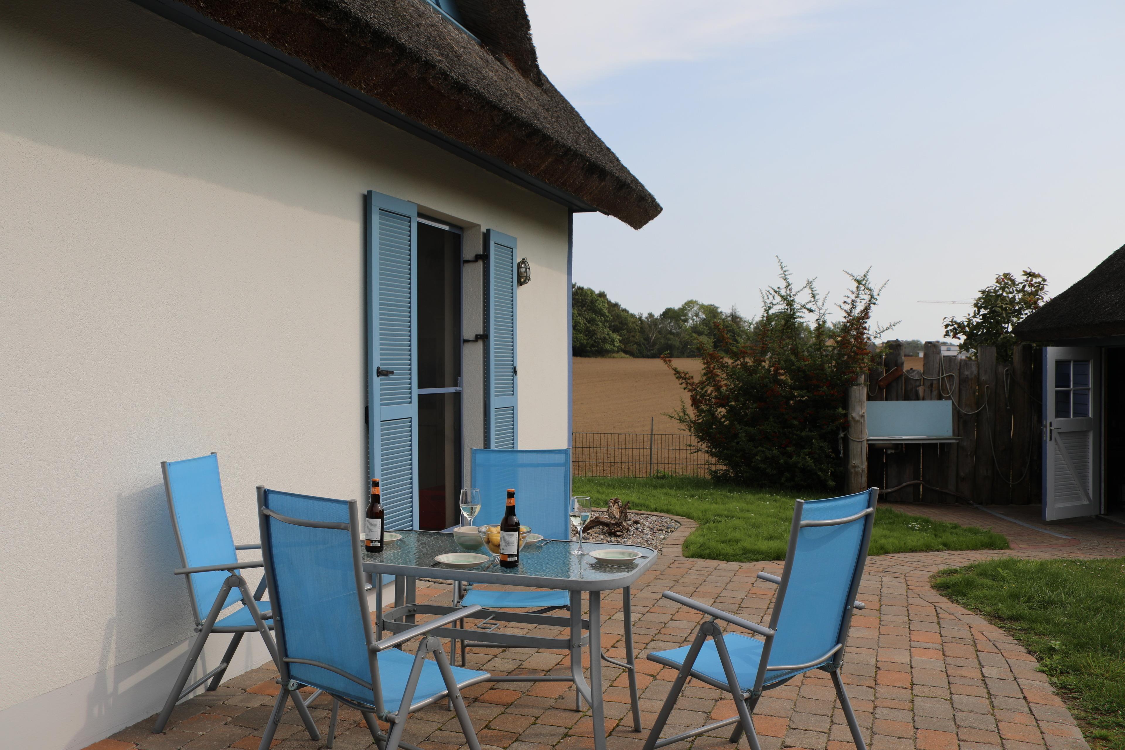 Gemütliches Reetdach-Ferienhaus in Glowe mit Sauna, Kamin und moderner Ausstattung für erholsame Tage.