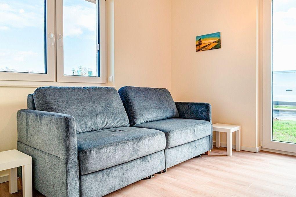 Das Zimmer im EG kann Ihnen als Rückzugsort dienen, den genau Sie brauchen (Homeoffice, Ruhezimmer, Spielzimmer oder barrierefreies Schlafzimmer). Die Couch kann in ein gemütliches Bett mit Topper (180×200) verwandelt werden.