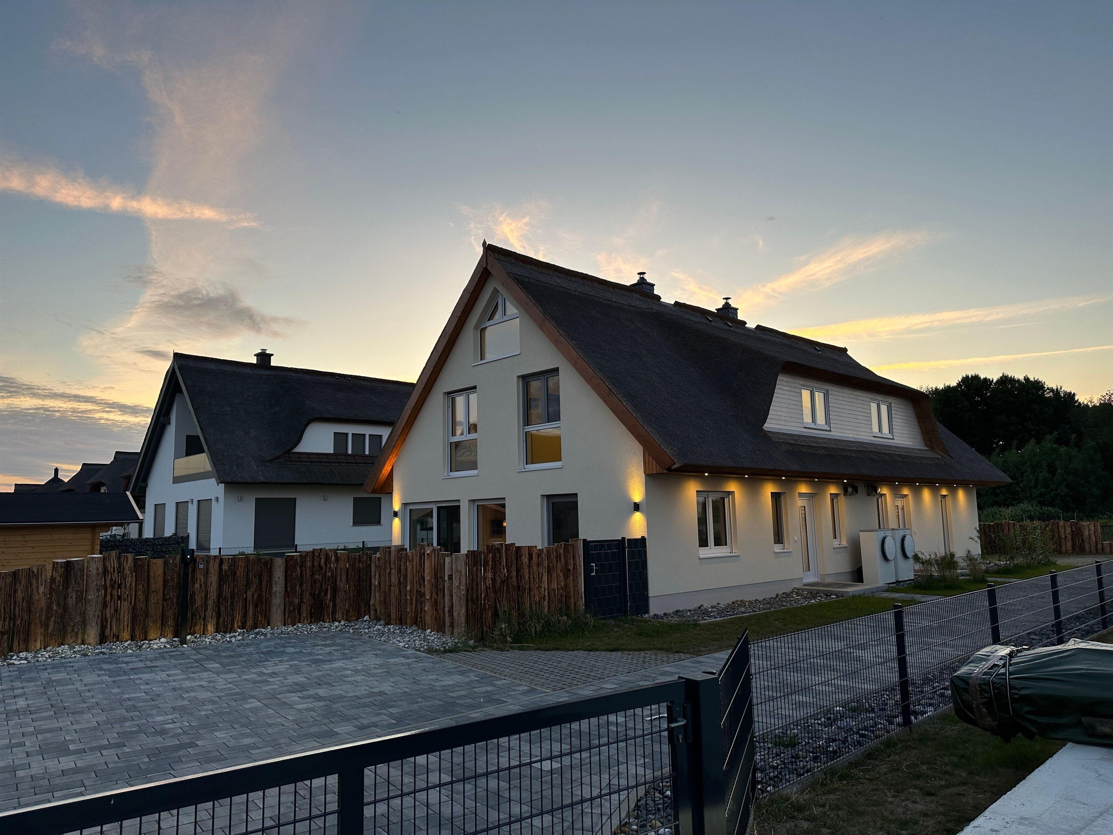 Exklusive Doppelhaushälfte mit Reetdach und Sauna, nur 500m vom Ostseestrand in Glowe entfernt.