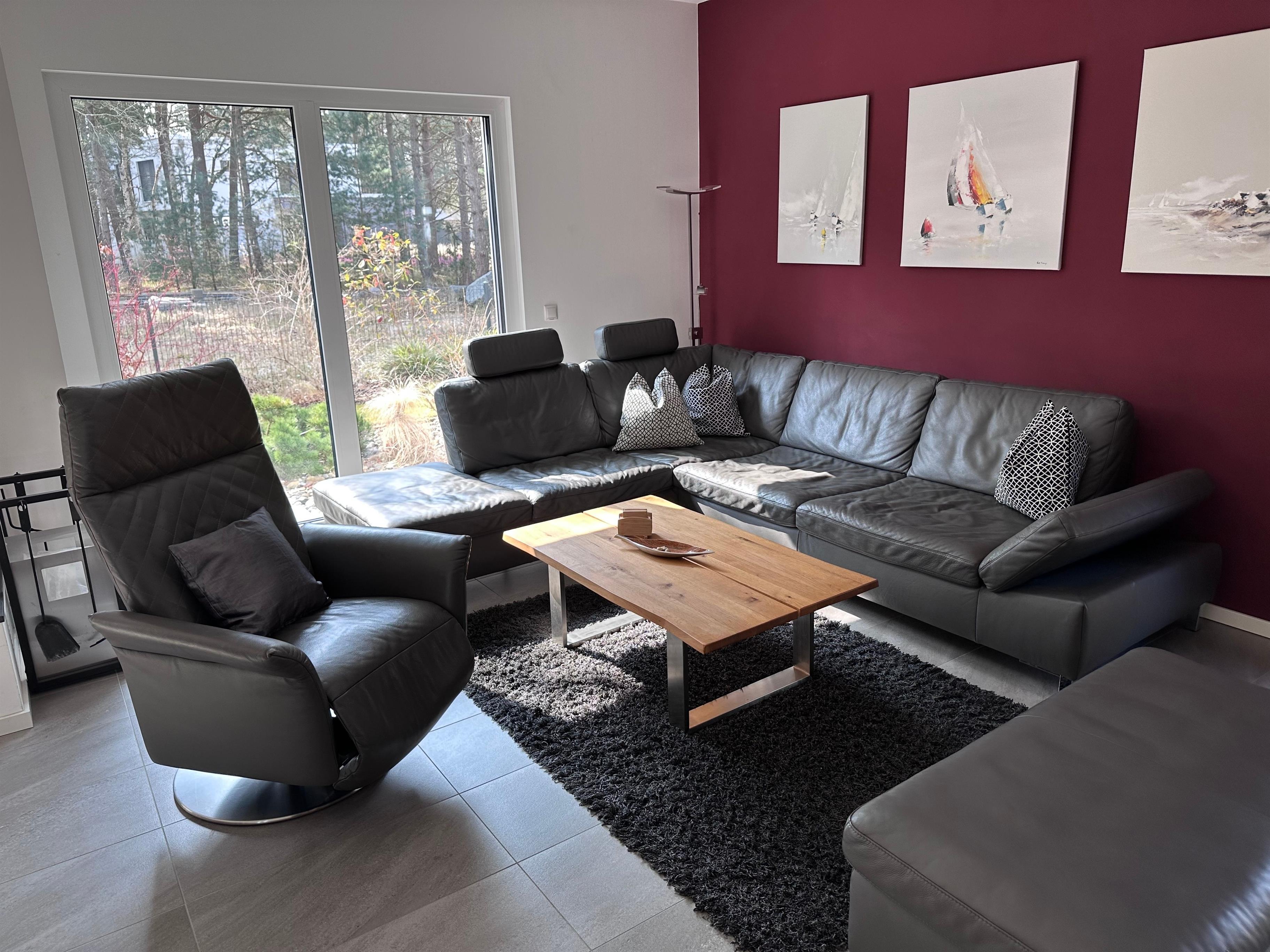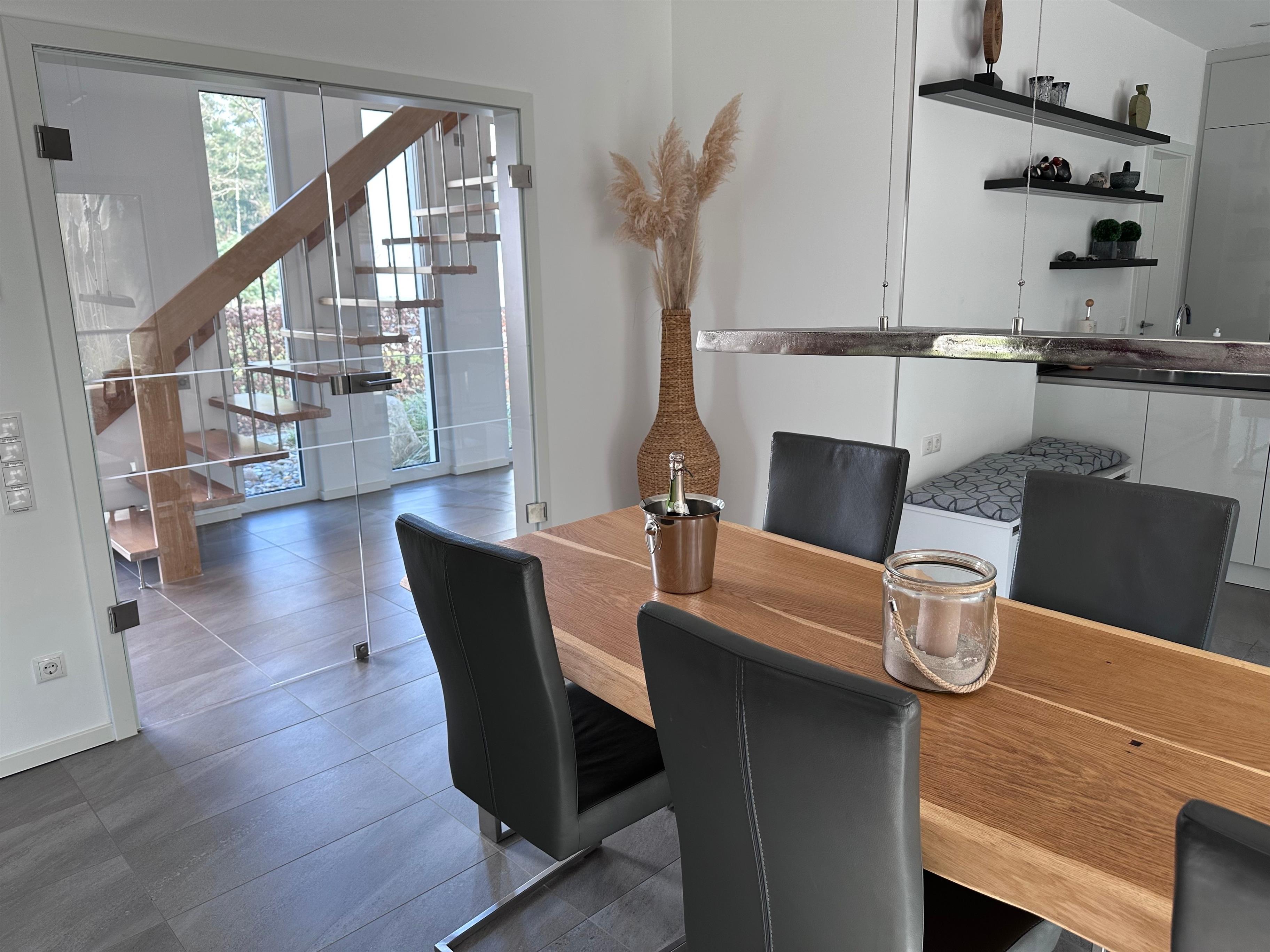 Das wunderschöne und hochwertig ausgestattete Ferienhaus für 4 Erwachsene und 2 Kinder liegt direkt am Dünenwald, nur wenige Meter von feinen Sandstrand in Glowe entfernt. Das größere Grundstück ist eingezäunt und neben einem Feuerplatz, gibt es einen schönen Grill und genügend Möglichkeiten, sich im Garten zu erholen. Das Haus bietet jeglichen Luxus- neben einer hochwertig ausgestatteten Küche, einer schönen Sauna, sind der Wohnbereich großzügig gestaltet. Auch in den kälteren Zeiten, bietet das Haus Annehmlichkeiten, wie Sauna und Kamin. Für eine Familie der beste Erholungsort. Der nächste Nachbar ist nicht direkt am Haus, also genügend Privatsphäre. Der wunderschöne Sandstrand ist fußläufig erreichbar- also keine Suche nach "nichtvorhandenen" Parkplätzen. Kommen Sie und überzeugen Sie sich.