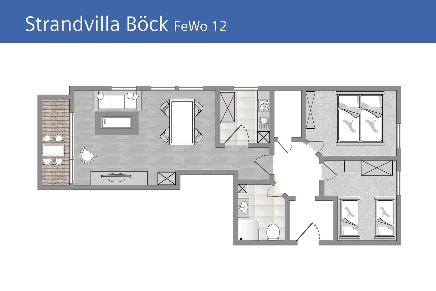 ALLGEMEINE ECKDATEN // 3-Raum Ferienwohnung für bis zu 4 Personen, 66m², Balkon mit seitlichen Meerblick ++