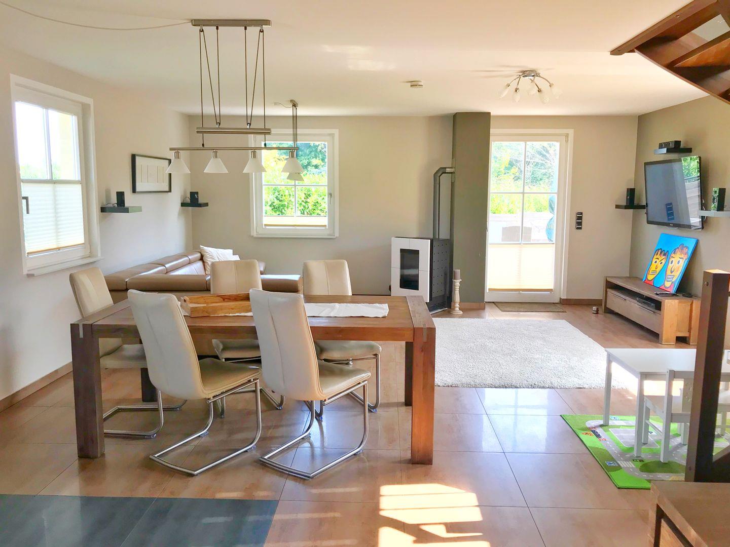 Das modern eingerichtete Ferienhaus Sarcander ist circa 100 qm groß und bietet Schlafmöglichkeiten für bis zu 6 Personen. Im Erdgeschoss des gepflegten Hauses finden Sie neben einem Hauswirtschaftsraum und einem kleinen Badezimmer mit Dusche und WC auch den großzügigen Wohnbereich. Dieser ist mit einer offenen Wohnküche mit Essbereich und einer gemütlichen Sitzgruppe ausgestattet. Ein großer Flachbildfernseher mit Dolbysystem und ein Pellets-Kamin sorgen für Kurzweil und gesellige Stunden.
