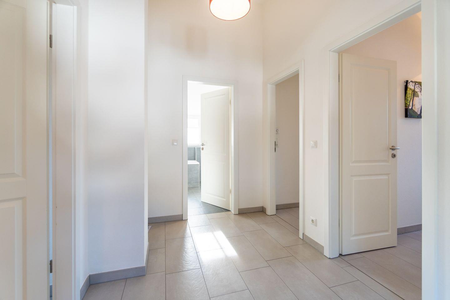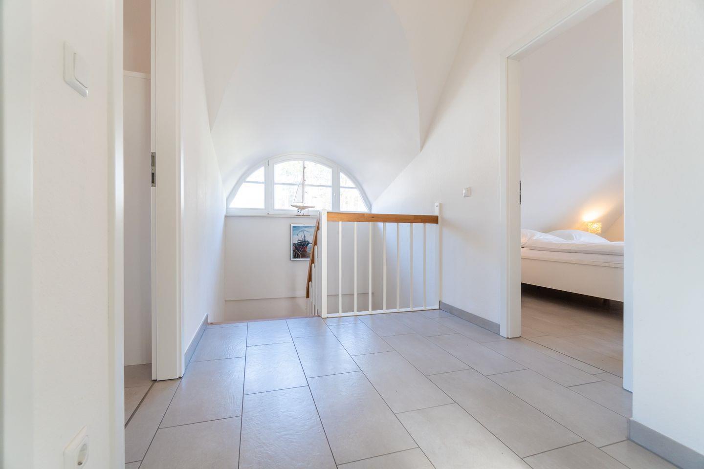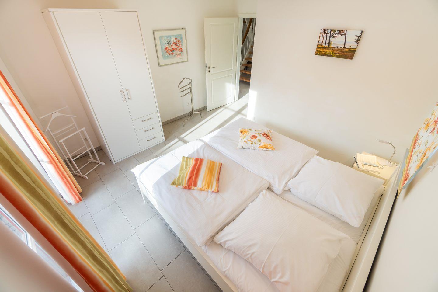 Ein Schlaf- und ein Badezimmer befinden sich im Erdgeschoss, das barrierefrei mit Hilfe einer Auffahrrampe erreicht werden kann. Extra breite Türen und eine ebenerdige Dusche sorgen für Komfort.
