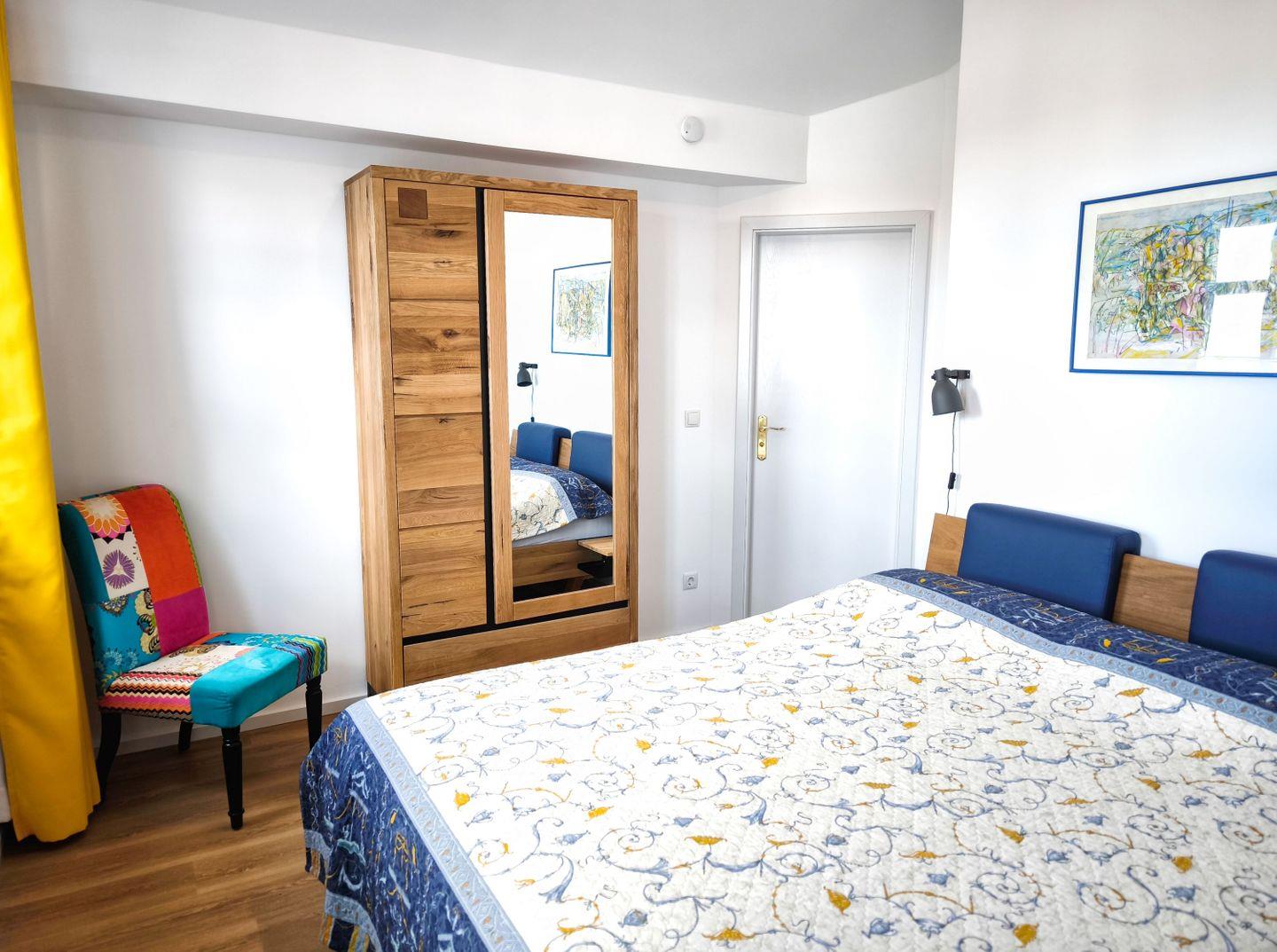 SCHLAFEN // ein separates Schlafzimmer mit bequemem Doppelbett (160x200 m), ein separates Schlafzimmer mit bequemem Doppelbett (140x200) und einer Schlafcouch (90x200 m), ein separates Schlafzimmer (Kinderzimmer mit Spielmöglichkeiten) mit einem Einzelbett speziell angefertigten Boot - Bett (90 x 200 m) ++