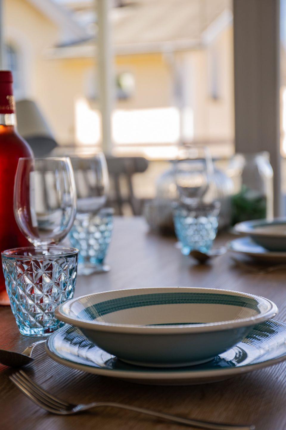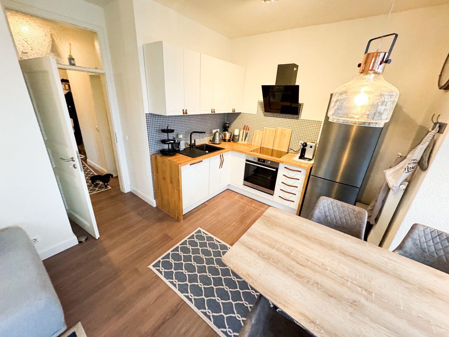 Die liebevoll eingerichtete Unterkunft befindet sich im 2. Stock eines 2019 vollständig renovierten Hauses. Die offene Küche, die zum Wohnzimmer führt, ist mit allen modernen Annehmlichkeiten ausgestattet, die Sie für einen angenehmen Aufenthalt benötigen. Hier finden Sie einen Herd, einen Backofen, einen Kühlschrank mit Gefrierfach sowie eine Kapselkaffeemaschine, einen Wasserkocher und einen Toaster. Nach einem langen Tag am Strand können Sie im Essbereich gemeinsam speisen und gemütliche Abende vor dem Fernseher verbringen, denn die Ferienwohnung verfügt über drei TV-Geräte und kostenfreies WLAN.