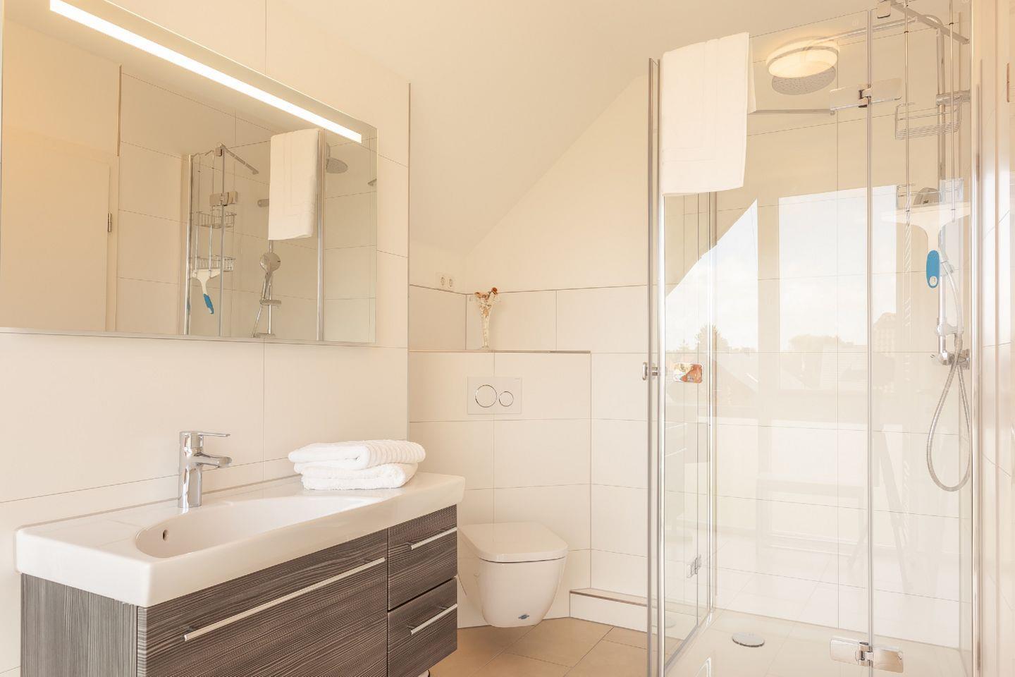 BAD // drei Badezimmer mit Dusche, WC und Föhn, eins davon mit zusätzlicher Badewanne, ein Gäste-WC im Erdgeschoss ++