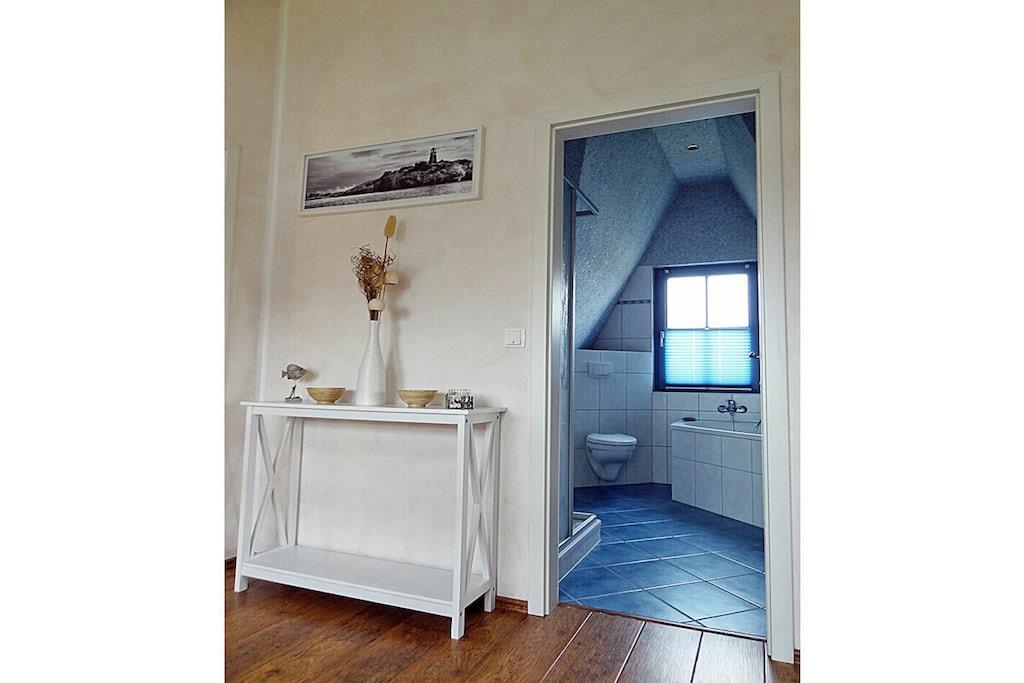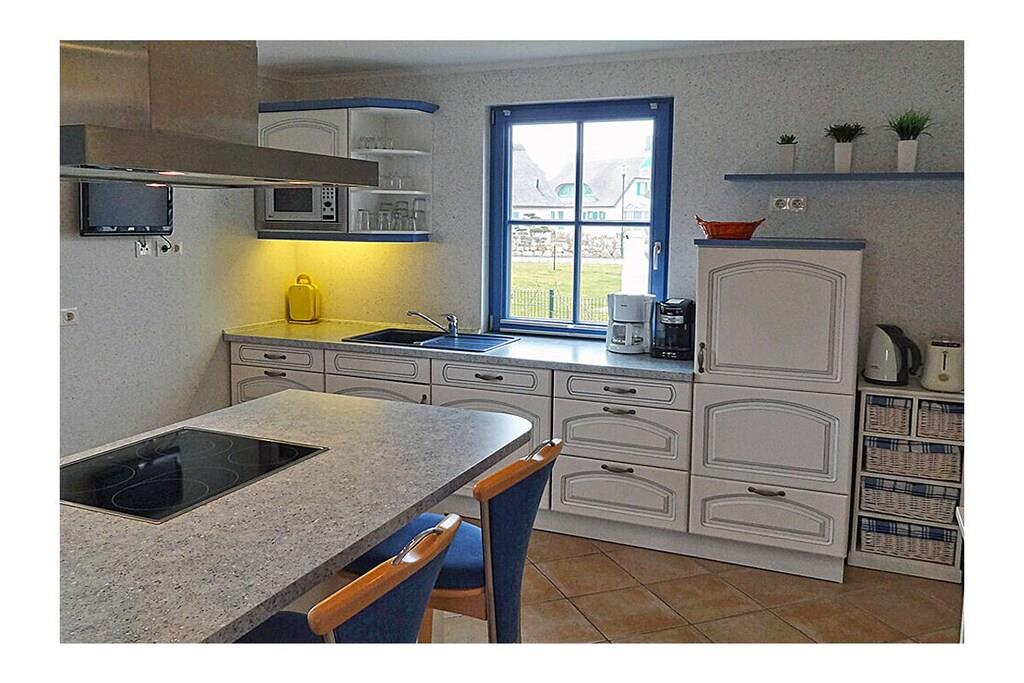 Erdgeschoss: großzügiger Wohn-, Essbereich mit Kamin und Fußbodenheizung, gemütliche Couchlandschaft und Sessel, TV-Sat (Flatscreen), Musikanlage/CD-Player, DVD-Player, Blu-ray Player, Internet (WLAN), Gesellschaftsspiele und Bücher für gemütliche Abende, komplett ausgestattete hochwertige Einbauküche mit 4-Plattenherd (Ceran), Backofen, Kühlschrank mit kleinem Gefrierfach, Geschirrspüler, Mikrowelle und diversen Elektrogeräten, TV, Badezimmer mit Dusche/WC, Sauna (kostenpflichtig: 1,00 Euro/Stunde), Hauswirtschaftsraum mit Waschmaschine, Wäscheständer und Staubsauger Obergeschoss: 1. Schlafzimmer mit einem Doppelbett (getrennte Matratzen jeweils 90×200 cm), einem Einzelbett, Kleiderschrank und TV-Sat (Flatscreen), Blu-ray Player, 2. Schlafzimmer mit einem Doppelbett (getrennte Matratzen jeweils 90×200 cm) und zusätzlichem Einzelbett, Kleiderschrank und TV-Sat (Flatscreen), Blu-ray Player, großes Badezimmer mit Badewanne, Dusche und WC, Insektenschutz an den Fenstern Außenbereich: Terrasse mit gemütlichen Gartenmöbel (6 Gartenstühle und 2 Liegestühle) und großem Sonnenschirm, ein Strandkorb lädt zum Relaxen ein, Grillmöglichkeit besteht(Grill nicht vorhanden), 2 PKW Stellplätze direkt am Objekt, überdachte Fahrradabstellmöglichkeiten (Gartenhaus) vorhanden Besuchen-Erleben-Genießen- Sie Ihren Urlaub im Reethaus „Strandkiefer“ Das gemütliche Ferienhaus „Strandkiefer“ befindet sich im Erholungsort Glowe in idealer Strandlage. Der naturbelassene Ostseestrand und auch der Yachthafen sowie der wunderschöne kilometerlange weiße Sandstrand sind nur wenige Gehminuten von Ihrem Feriendomizil entfernt. Das komplett umzäunte Grundstück umfasst ca. 575 qm. Unser Ferienhaus „Strandkiefer“ mit ca. 100 qm bietet alles, was sich das Urlauberherz wünscht. Angefangen bei der gemütlichen Couchlandschaft mit Kamin, eine sehr gut ausgestattete Küche finden Sie im Erdgeschoss weiterhin noch eine klassische Aufgusssauna mit eigener Dusche. Im Obergeschoss befinden sich die beiden Schlafzimmer mit TV und ein großes Badezimmer mit Dusche und Badewanne. Jede Menge Spaß und Abenteuer für die Kleinen, bietet der neu angelegte Spielplatz im Kurpark. Nach einem Ausflug zu einer der vielen Sehenswürdigkeiten der Insel Rügen, können Sie die Terrasse mit Garten-, Liegestühlen und einem Strandkorb (nur saisonal vorhanden) nutzen um den Abend gemütlich ausklingen zu lassen. Das Ferienhaus „Strandkiefer“ ist ein Nichtraucherhaus. Einkaufsmöglichkeiten, Bäcker, Restaurants und ein Getränkehandel befinden sich in unmittelbarer Nähe. Optimale Rad- und Wandermöglichkeiten um die Insel zu erkunden runden das Angebot ab. Bei uns sind Hunde willkommen! (Gebühr Euro 5,-/ pro Hund/ pro Nacht).