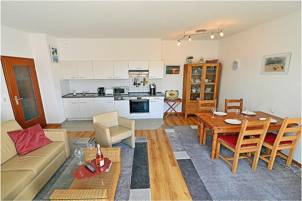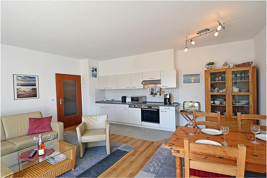 “Herzlich willkommen im Appartementhaus „Haus Glowe” mit 21 Wohneinheiten. Die Ferienwohnung „Seemöwe“ ist modern eingerichtet. Der feinsandige Badestrand ist nur 250 m entfernt. Der große Südbalkon mit elektrischer Fensterjalousie ist 18 m² und lädt zum Verweilen ein. Die „Seemöwe“ ist eine Nichtraucherwohnung. Alle Fenster sind mit Jalousien ausgestattet. Waschmaschine und Wäschetrockner befinden sich im Objekt/ Dachboden (Gebühr 2,- pro Nutzung). Der PKW-Stellplatz ist direkt am Objekt mit der Nr. 17. Einkaufsmöglichkeiten, Bäcker und Restaurants sind in unmittelbarer Nähe. Es gibt optimale Rad- und Wandermöglichkeiten um die Insel zu erkunden. Haustiere nach Absprache (Gebühr Euro 5,-/ pro Haustier/ pro Nacht) Goßzügiger Wohn- Essbereich mit gemütlicher Couchlandschaft, TV/ Sat (Flatscreen), DVD-Player, Radio/ CD und Blu-ray Player, Bücher und Gesellschaftsspiele für gemütliche Abende, offene komplett ausgestattete Einbauküche mit diversen Elektrogeräten, 4- Plattenherd (Ceranfeld), Backofen, Kühlschrank, Geschirrspüler, Mikrowelle und diversen Elektrogeräten, 1. Schlafzimmer mit Doppelbett ( 2 Matratzen je 90 x 200), TV/ Sat, gemütlicher Sessel und Kleiderschrank, 2. Schlafzimmer mit zwei Einzelbetten (90 x 200) und Kleiderschrank, Bad mit Dusche/ WC, Fön, großer Balkon mit Gartenmöbeln und Sonnenschirm.