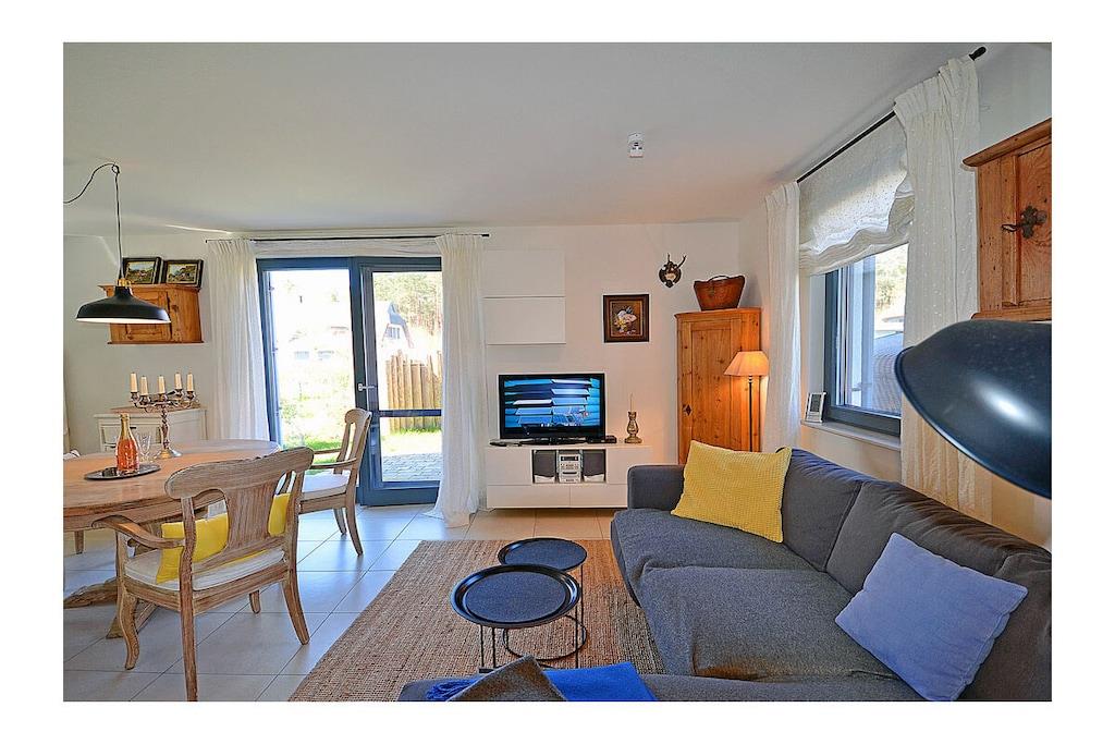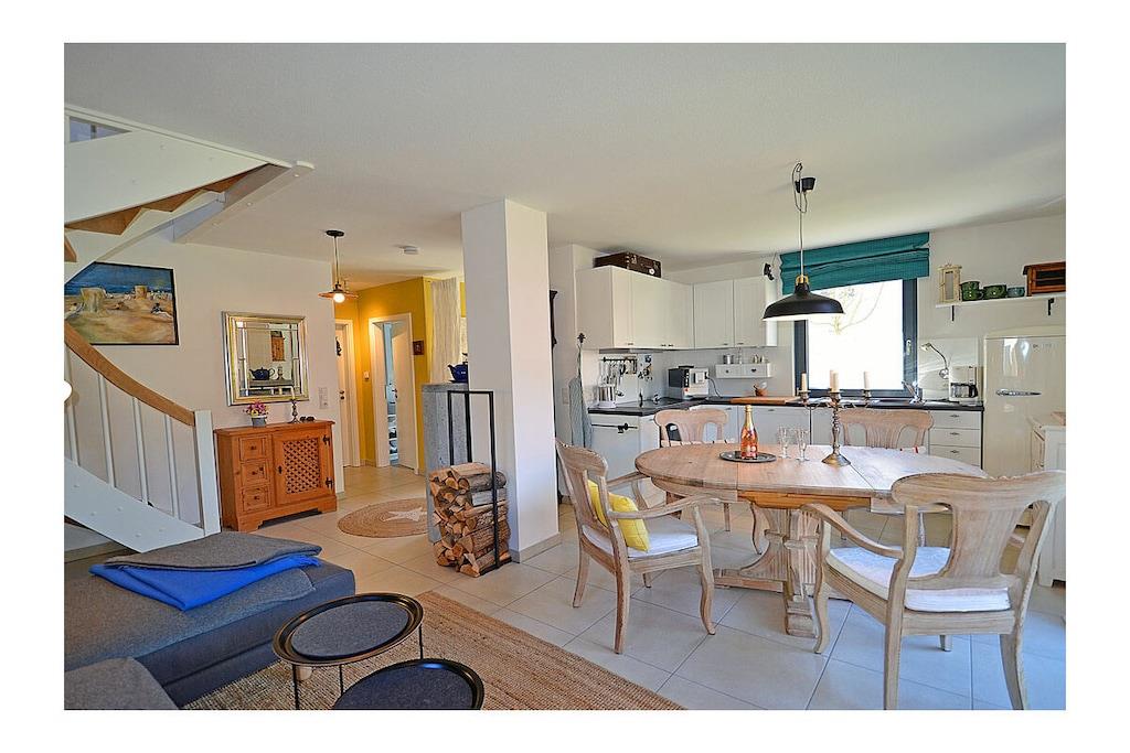 Erdgeschoss: großzügiger Wohnbereich mit gemütlicher Couchlandschaft, Kamin, TV (Flatscreen), Radio/CD, Bücher und Gesellschaftsspiele für gemütliche Abende, Fußbodenheizung im gesamten Haus vorhanden, komplett ausgestattete hochwertige Einbauküche mit 4-Plattenherd (Ceran) und Backofen, Kühlschrank mit großem Gefrierfach, Geschirrspüler und diversen Elektrogeräten, Gäste-WC, Sauna mit ebenerdiger Regendusche, Hauswirtschaftsraum mit Waschmaschine und Trockner (ohne Gebühr), Internet (WLAN) steht kostenfrei zur Verfügung Obergeschoss: 1. Schlafzimmer mit einem Doppelbett (Matratze je 90 x 200) und großem Kleiderschrank, 2. Schlafzimmer mit einem Doppelbett (Matratze je 90 x 200cm), ein ausklappbares Einzelbett (90cm x 200cm) und Kleiderschrank, Bad mit Dusche und WC, Kosmetikspiegel und Föhn Außenbereich: gemütliche Terrasse mit einem XL-Strandkorb und einem normalen Strandkorb, Gartenmöbel für 6 Personen, zwei Sonnenschirme und vier Sonnenliegen, Grillmöglichkeit besteht (elektronischer Tischgrill vorhanden) Erholung und Entspannung unter Reet – im Ferienhaus „Sansibar“ Die moderne Ferienhaushälfte umfasst ein Grundstück von ca. 406 qm. „Sansibar“ ist ein Nichtraucherhaus. Fußbodenheizung ist im gesamten Haus. Im Erd- und Obergeschoss sind Fliegenschutzgitter vorhanden. Kinderhochstuhl & Kinderreisebett mit Inlett stehen zur Verfügung. Für entspannte Strandtage und dem Schutz vor der Sommersonne gibt es eine Strandmuschel. Ein Windschutz und auch Sandspielzeug für Kinder runden den Badetag an der Ostsee ab. Eine abschließbare Fahrradabstellmöglichkeit im Gartenhaus ist vorhanden. (Drei Fahrräder stehen zur Verfügung und können gerne genutzt werden-ohne Gewähr), Ein PKW-Stellplatz befindet sich direkt am Objekt. Nach einem ausgedehnten Strandspaziergang, einem Badetag oder einem Ausflug zu einer der zahlreichen Sehenswürdigkeiten der Insel können Sie es sich vor dem Kaminofen oder auf der Gartenterrasse gemütlich machen und den Tag entspannt ausklingen lassen. Einkaufsmöglichkeiten, Bäcker, Restaurants und ein Getränkemarkt finden Sie in unmittelbarer Nähe. Haustiere mit Rücksicht auf Allergiker sind leider nicht gestattet!