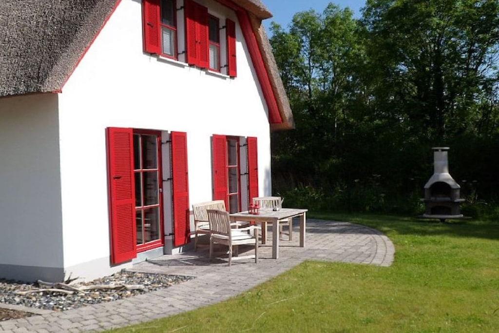 Gemütliches Reetdachhaus mit Sauna, Kamin und großem Garten nahe Strand und Einkaufsmöglichkeiten.
