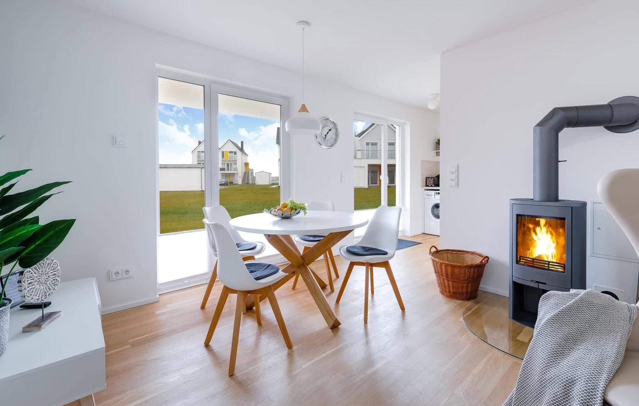 Im Urlaub ist Zeit für kreatives Kochen, die rundum ausgestattete Wohnküche lässt hierbei keine Wünsche offen. Die direkt an den Essbereich angrenzende überdachte Terrasse verspricht gesellige Grillabende. frühstücken bei Morgensonne auf der Ostterrasse, Urlaubsfeeling pur.