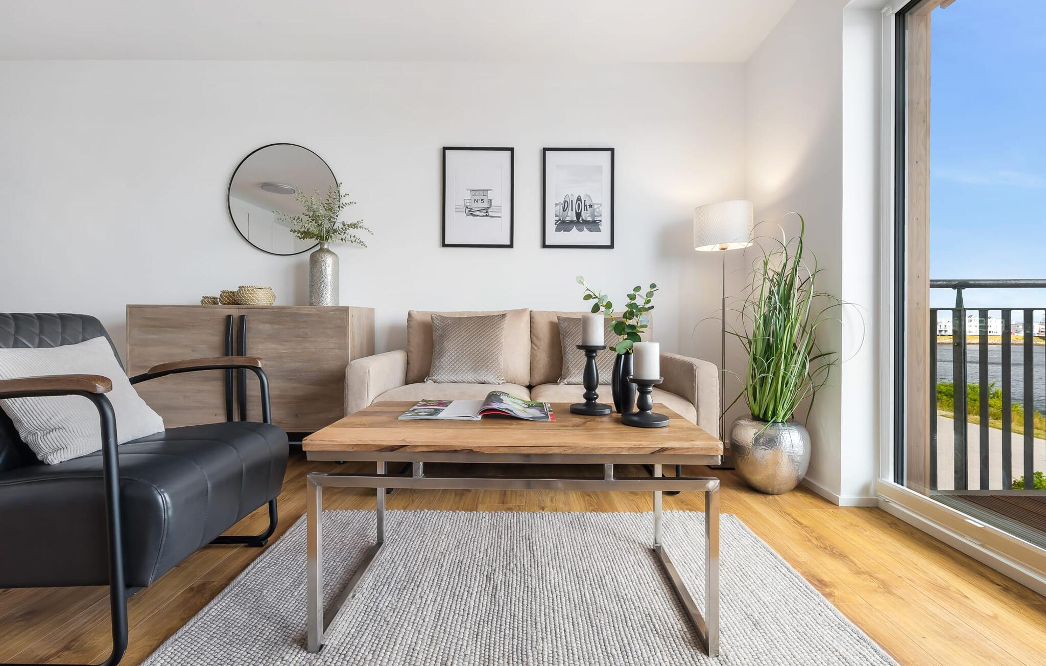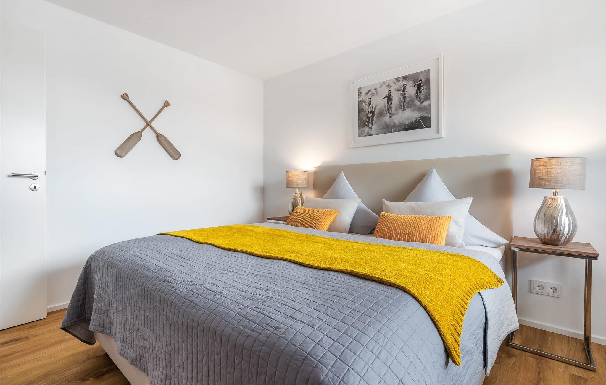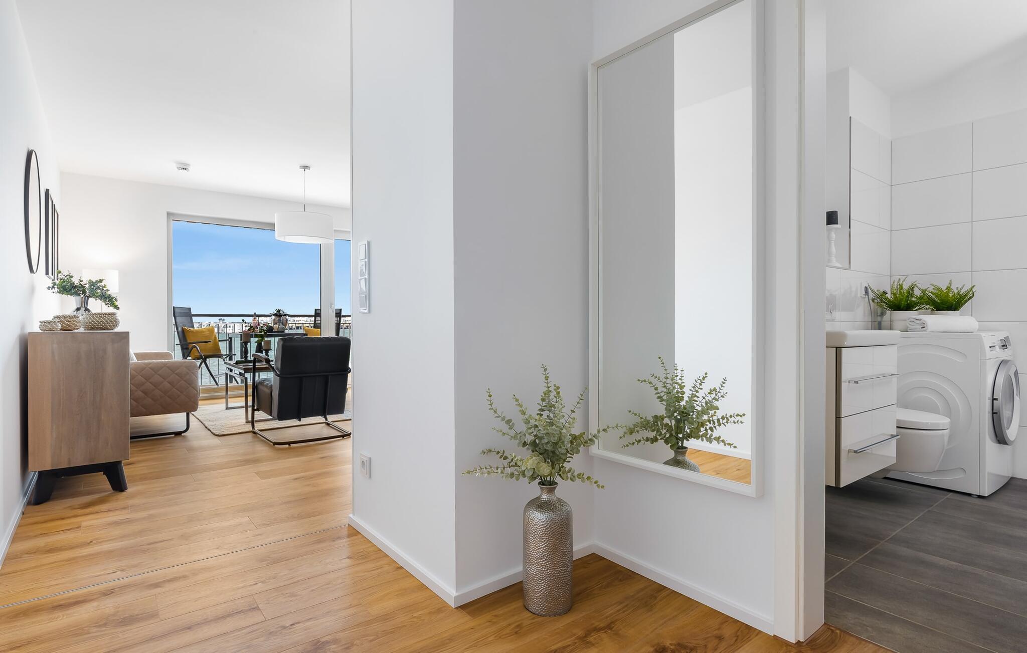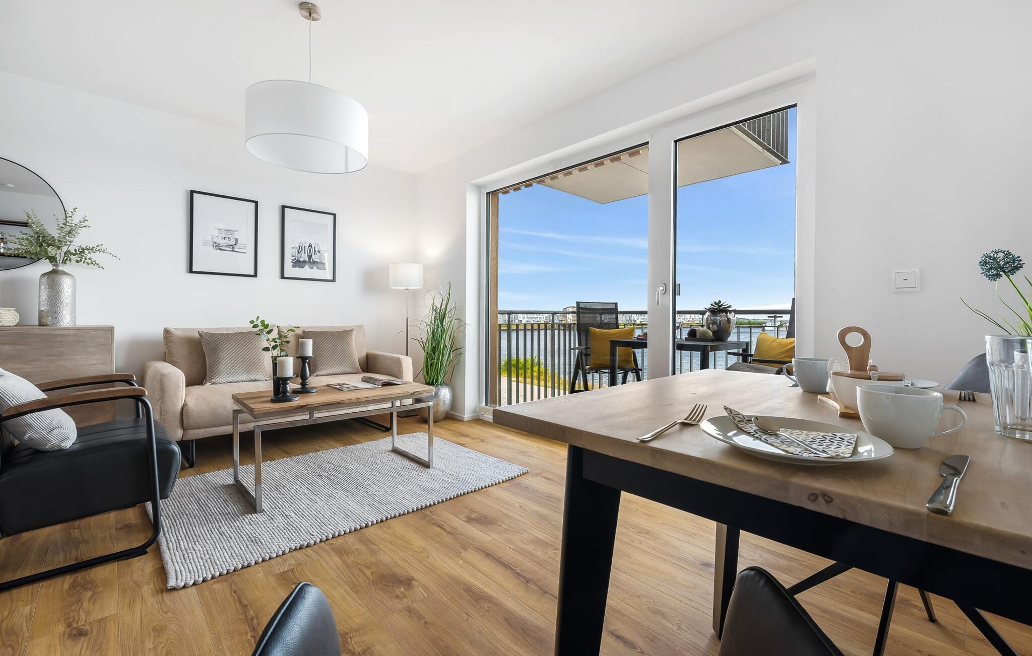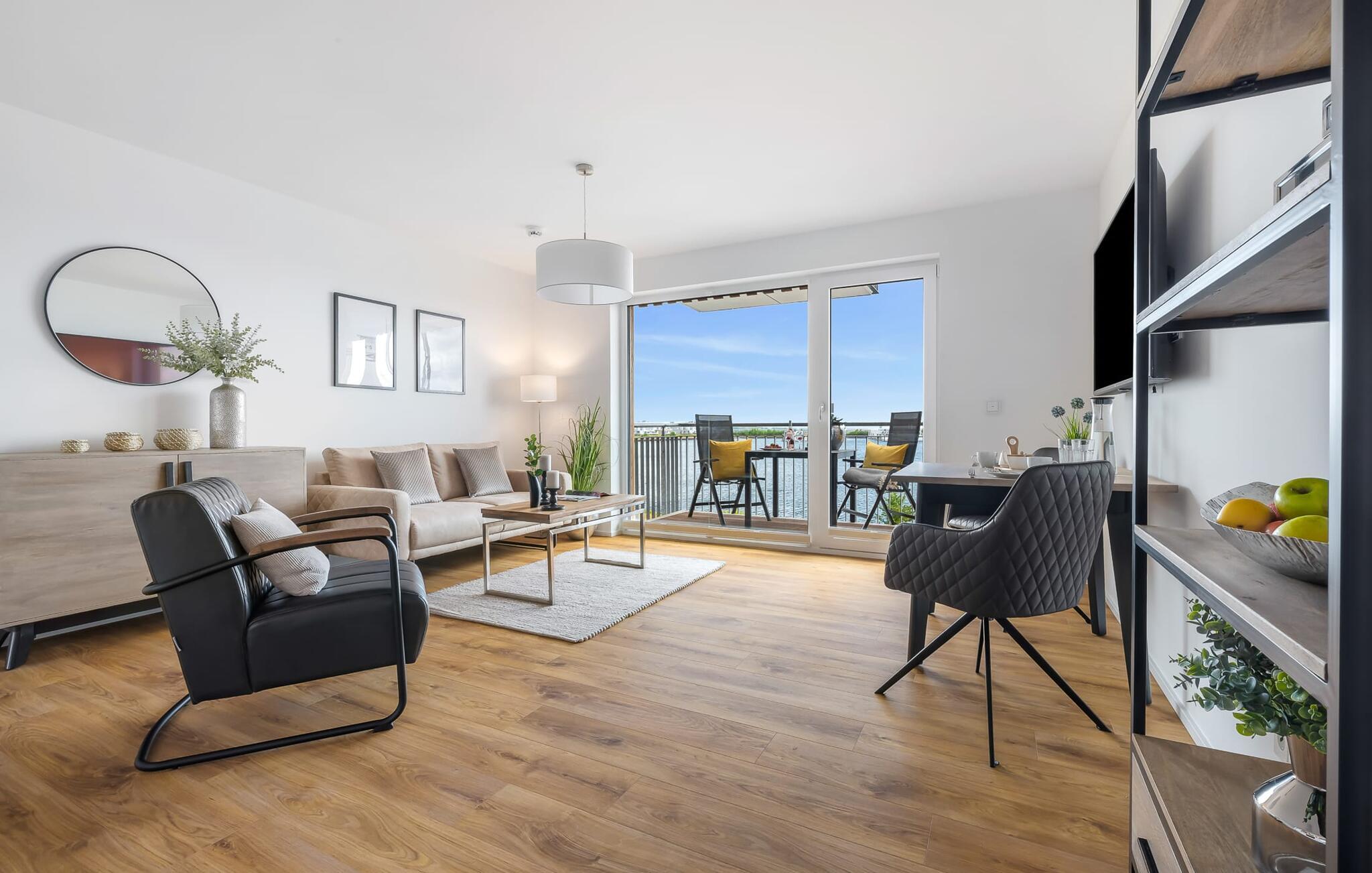 Elegant und modern, zentral und doch ruhig, gepaart mit einem traumhaften Blick auf den Olpenitzer Hafendas beschreibt die Wohnung GOLDFISCH.