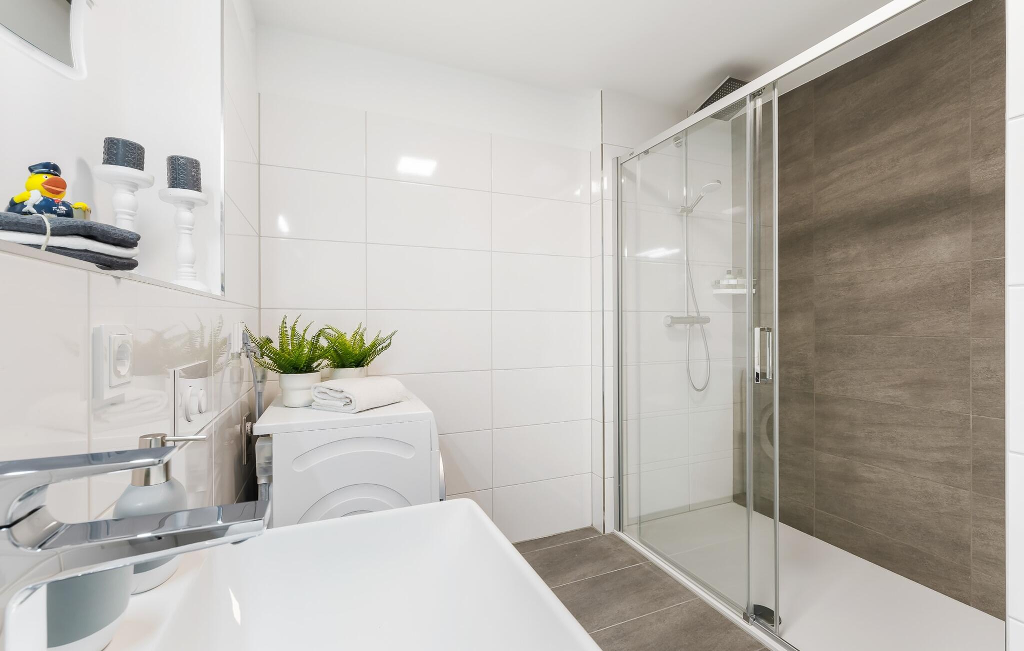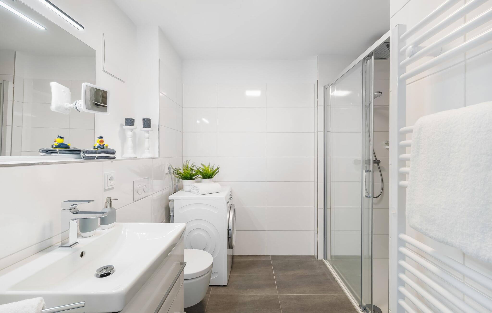 Das Bad lässt ebenfalls keine Wünsche offen und bietet mit der bodengleichen Dusche eine wohltuende Erfrischung.