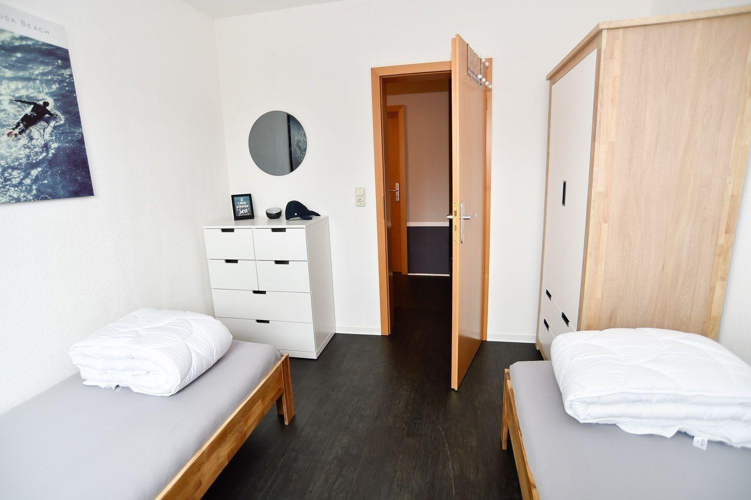 Die Ferienwohnung verfügt über zwei abgetrennte Schlafräume. Im Schlafraum mit Doppelbett gibt es ein zusätzliches Babybett. Der zweite Schlafraum verfügt über zwei Einzelbetten. Schon beim Frühstück auf der eigenen Terrasse genießen Sie die ersten Sonnenstrahlen.
