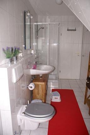 Das Badezimmer ist mit einer Dusche, einem Waschtisch und WC ausgestattet.