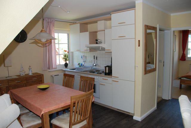 Die geräumige und gemütlich eingerichtete Wohnung bietet für bis zu 4 Personen viel Platz für einen erholsamen Urlaub. Der offen gestaltete Wohnbereich verfügt über eine komfortable Couch, einen Kamin für die kühleren Tage, eine Essecke und die integrierte Küche. Diese ist unter anderem mit mit einem Herd mit Backofen, Kaffeemaschine, Kühlschrank mit Gefrierfach, Wasserkocher, Toaster und vielem mehr ausgestattet.