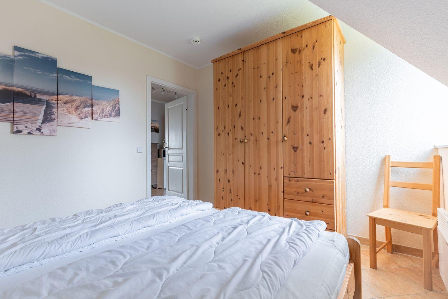 Die gemütlichen Schlafzimmer sind mit jeweils einem Doppelbett möbliert und ermöglichen guten Schlafkomfort. Im Badezimmer verfügen Sie über eine Dusche, einen Waschtisch, ein WC und einen Föhn.