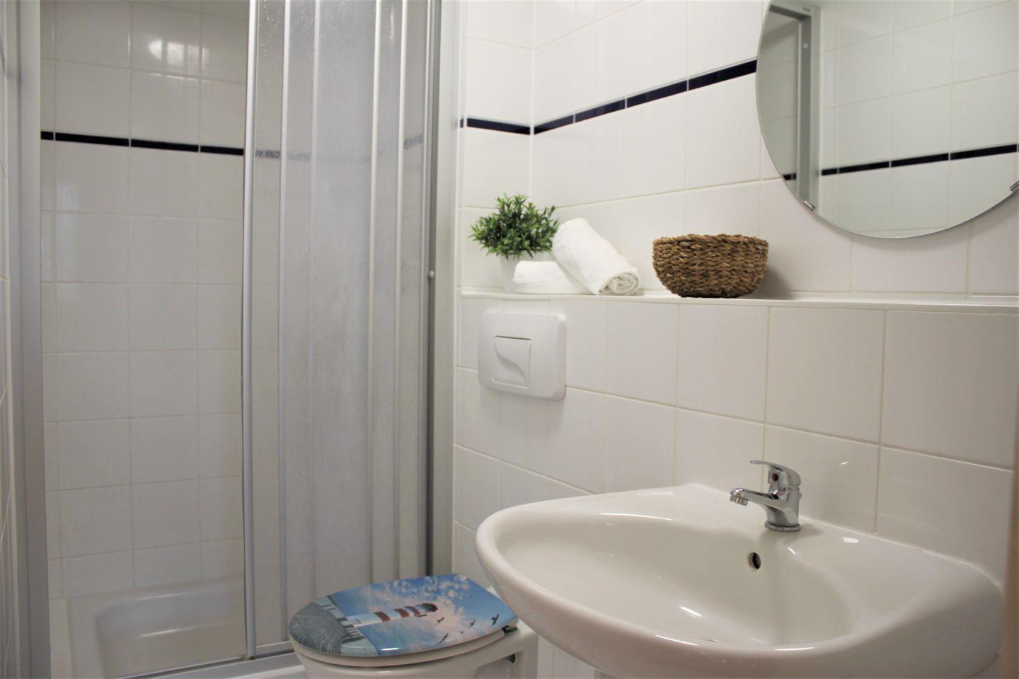 Das Badezimmer ist mit einer Dusche, Waschtisch und WC ausgestattet. Die Wohnung verfügt außerdem über eine Fußbodenheizung und Ihren Pkw parken Sie kostenfrei auf dem Parkplatz vor der Appartementanlage.