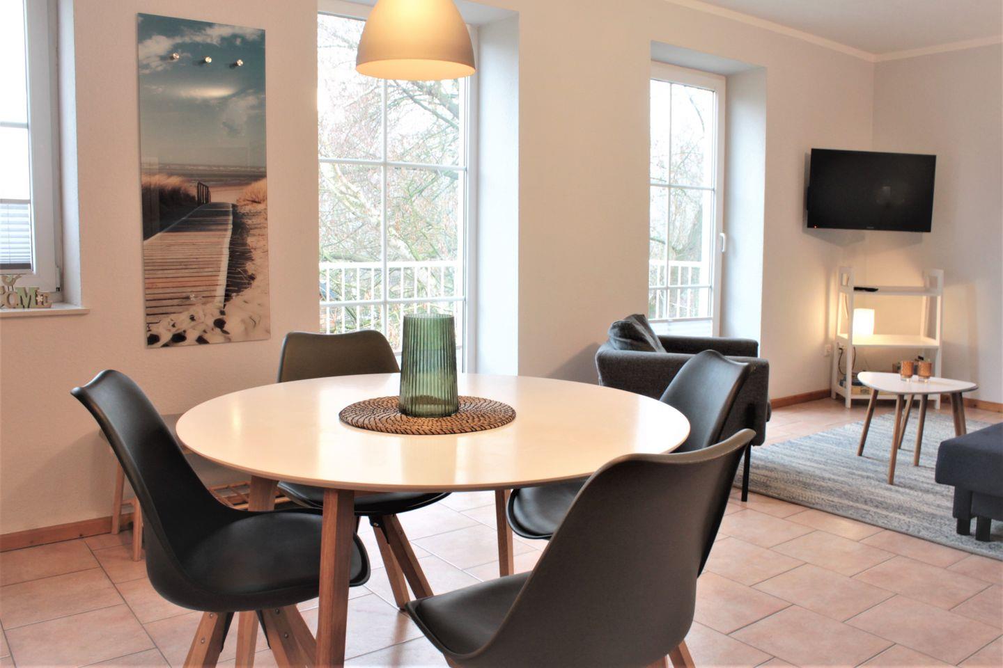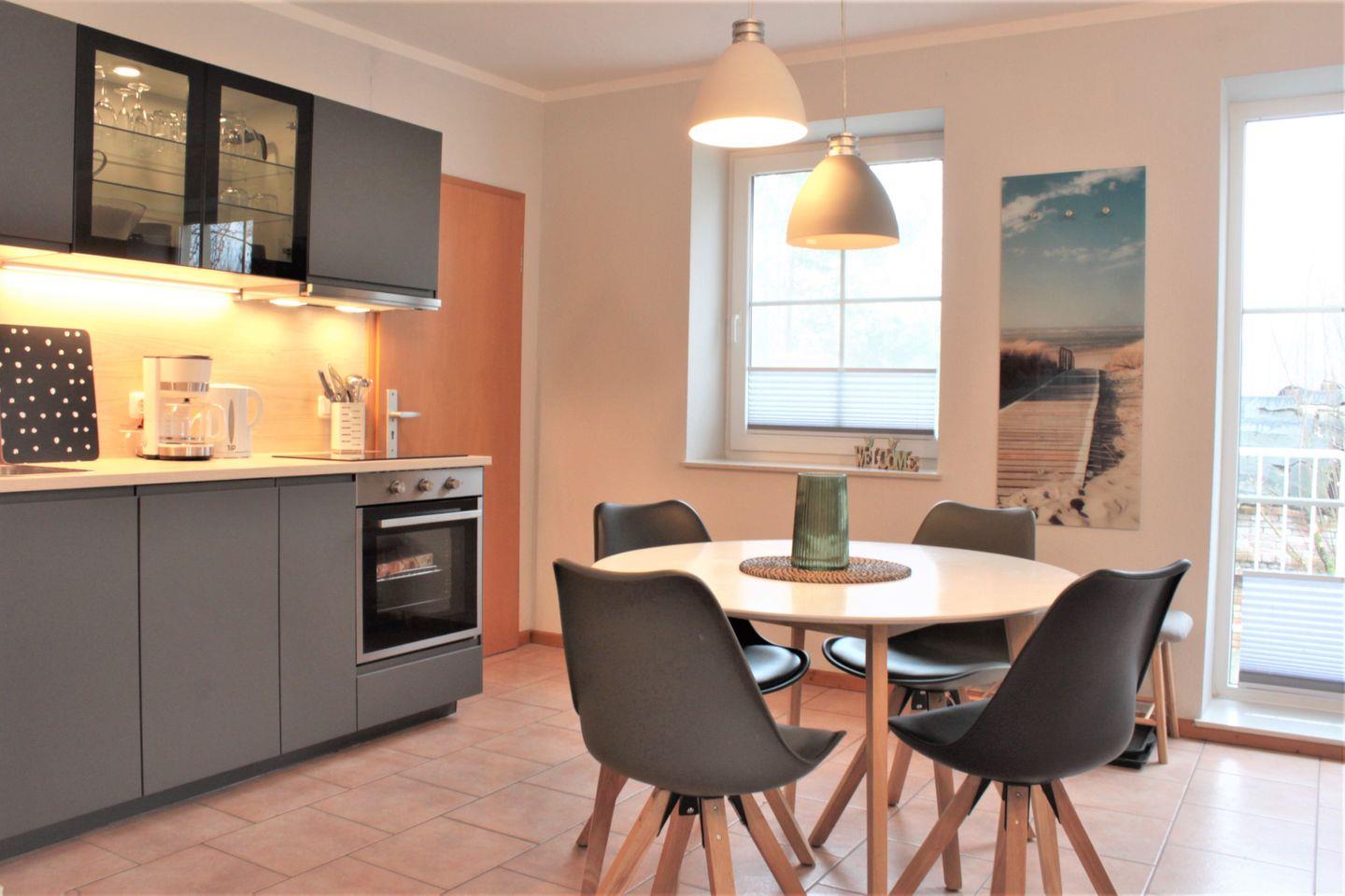 Die Ferienwohnung Strandschnecke befindet sich in einer Appartementanlage mit mehreren Ferienwohnungen unweit vom Naturstrand in Gollwitz entfernt. Die 2-Zimmer-Wohnung bietet für 2 Erwachsene und 2 Kinder ausreichend Platz für einen schönen Sommerurlaub. Das Wohn- und Esszimmer sind kombiniert eingerichtet und verfügen über eine Sofaecke mit TV-Gerät, einen Esstisch und den Zugang zum möblierten Balkon. Die KÜche ist ebenfalls in den Raum integriert und ist mit vielen technischen Geräten, wie Kühlschrank mit Gefrierfach, Mikrowelle, Geschirrspüler, Herd mit Backofen und weiteren Kleingeräten ausgestattet.