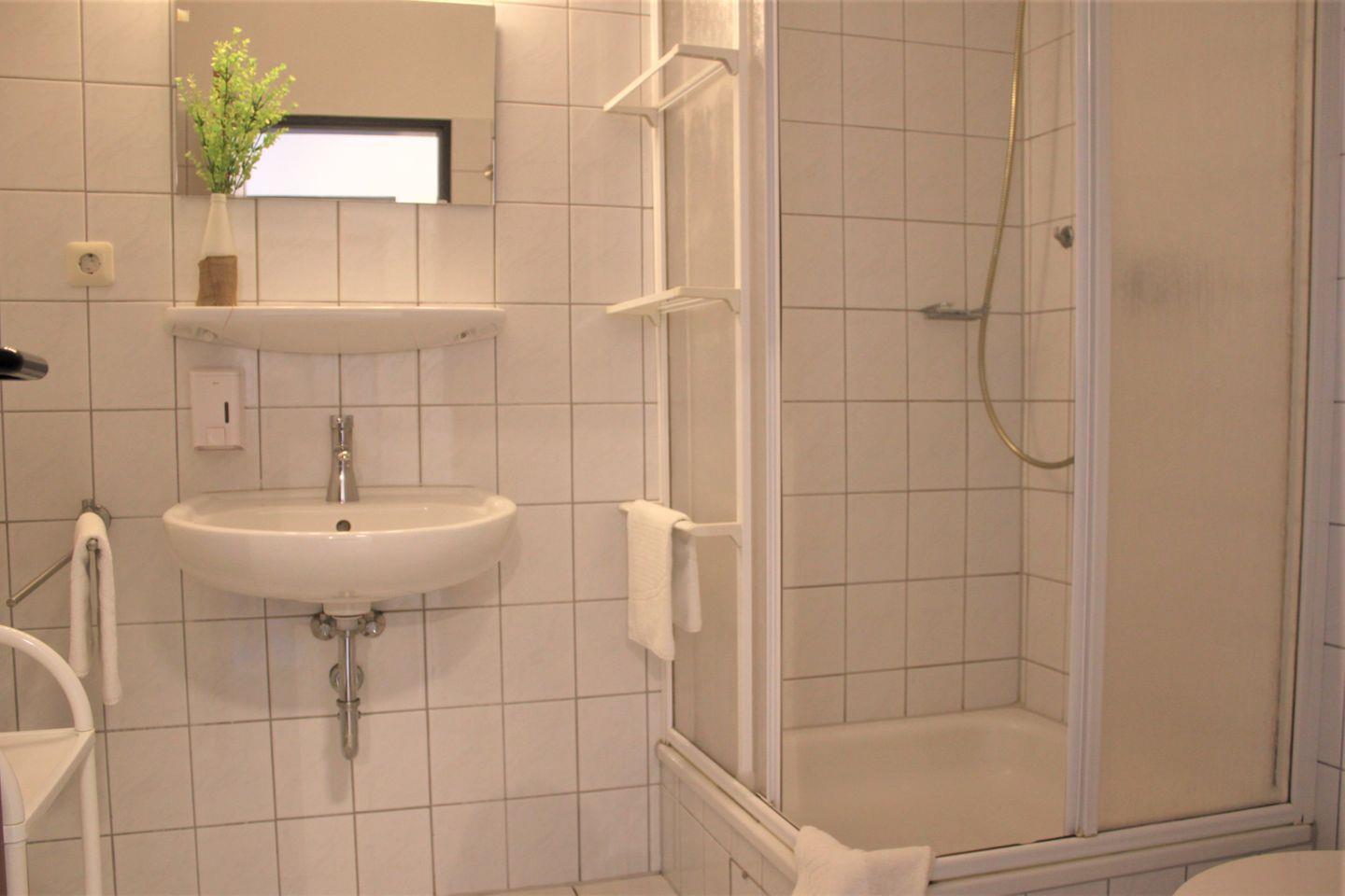 Das Badezimmer ist innenliegend und bietet eine Dusche, Waschtisch und WC.